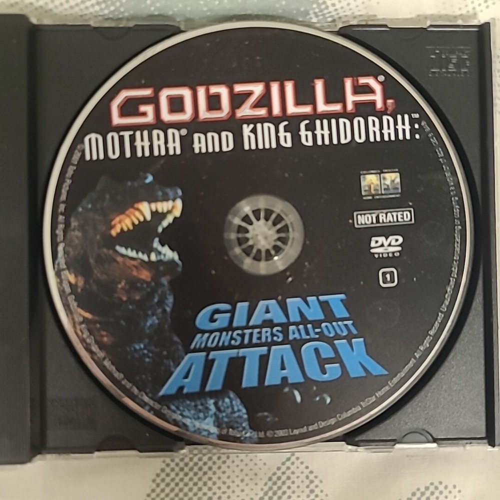 The DVD is in very good acontition, but it does not include the original case. ----------- Godzilla, Mothra, and King Ghidorah: Giant Monsters All Out Attack DVD Though the Japanese armed forces believe that they killed Godzilla fifty years ago, they are proven wrong when the giant beast destroys a U.S. submarine and causes other similar, tragic events. Godzilla finally appears, prompting a powerful old Japanese mystic to summon the Holy Beasts of Yamato--King Ghidorah, Mothra, and Baragon, a trio that protected Japan in ancient times. The three giant monsters collide with Godzilla in a battle of awesome scope and power. 2003 Columbia Tri 1 DVD Not Rated