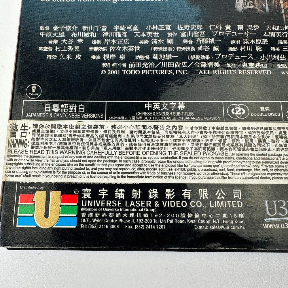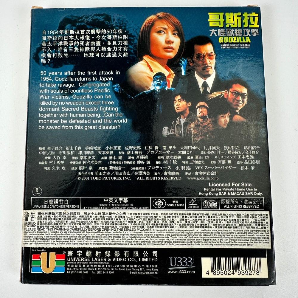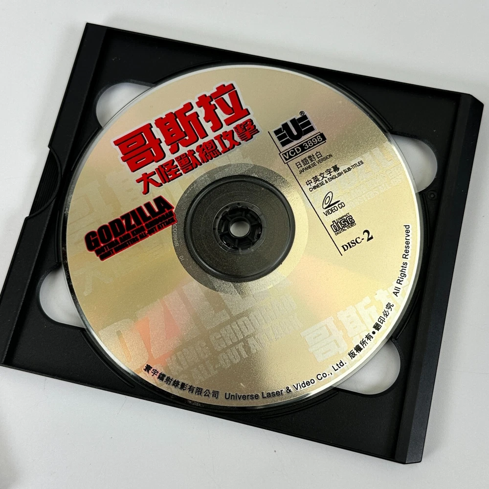Godzilla Mothra and King Ghidorah Giant Monsters All Out Attack VCD Video CD SAR Condition: Untested. Light scratching on discs. See photos for detail. We ship out next business day! Fast Shipping. Quality Packaging. We are happy to answer any questions you may have.