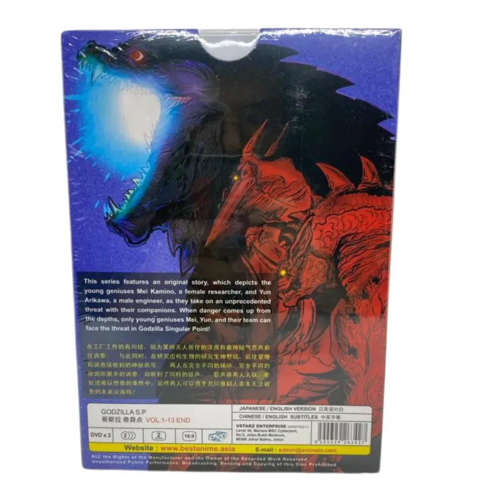 Created with Eselt - eBay Listing Designs Hope for the best. Plan for the worst. Send us a message Created with Eselt - eBay Listing Designs Our Store Seller Profile Feedback Created with Eselt - eBay Listing Designs Godzilla SP Singular Point Complete TV Series Anime DVD English Subbed Dubbed Description Payment Shipping | Returns Synopsis English Title Godzilla Singular Point Japanese Title ゴジラ S.P <シンギュラポイント> Episode 1 - 13 Released Date Spring 2021 Audio English / Japanese Subtitles English / Chinese Disk(s) 2 Region ALL/0 (Worldwide/Region Free) Notes 1. Please check other tabs for more details regarding the Payment, Shipping, & Returns. 2. Please check your shipping address, product details (country, etc.) selected carefully before placing an order. 3. Please note that due to factors such as lighting effects, monitor brightness/contrast settings, etc., the colors of the website photos may be slightly different from the actual colors. Payment Currently, we only accept payment through eBay-managed payment Notes International shipments may be subjected to additional custom fees and duties. We DO NOT pre-bill any import duties , customs fees or tariffs imposed by various government on the product. Import duties and taxes may be applied to certain countries and varies from country to country. Customs fees is incurred for customs clearance or import sales tax is levied on deliveries , the charges shall be borne by the BUYERS Buyers have to clarify the customs laws and regulations with the local authorities to obtain specific information BEFORE PURCHASE Shipping We ship from USA using USPS First Class. our handling time is 1-3 business day. Estimate time delivery in US region is 2-5 business day. we will provide a valid tracking number. You item will be wrapped with bubble wrap to ensure safety during shipment. If you have any request on customs declaration form, please leave a note when you check out. Returns If you have any problem with the order, do contact us via eBay message. we are glad to assist you and solve the problem as soon as possible. Items can be returned within 30 days in a good condition. Godzilla Singular Point This series features an original story, which depicts the young geniuses Mei Kamino, a female researcher, and Yun Arikawa, a male engineer, as they take on an unprecedented threat with their companions. When danger comes up from the depths, only young geniuses Mei, Yun, and their team can face the threat in Godzilla Singular Point! For more information: search the titles at Myanimelist/anilist Created with Eselt - eBay Listing Designs Created with Eselt - eBay Listing Designs Links Our Store Seller Profile Feedback More items Are you looking for something similar? See our other items! Show more items Contact Send us a message