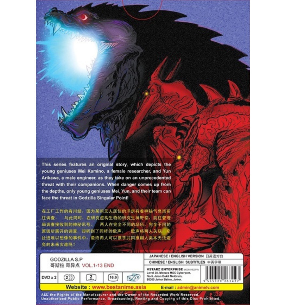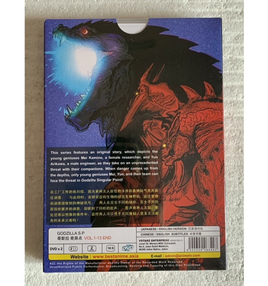 Created with Eselt - eBay Listing Design Editor Give us a call Send us a message Created with Eselt - eBay Listing Design Editor Created with Eselt - eBay Listing Design Editor Godzilla S.P:Singular Point Anime DVD Complete Series (Vol. 1-13) English Dubbed Description Payment Shipping Returns Other Item Description: Number of Episode : 1 - 13(END) Number of Disc : 2 Language : Japanese / English Subtitle : English / Chinese Condition : NEW, Original & Licensed Item Disc Format : NTSC Format Region ALL Region / Region 0 Region Code: All Region/Region FREE "0" (Able to play on any DVD Players throughout the World) Payment We only accept payment by Payoneer due to new payment method by eBay. Payment must be received within 3 business days. Please check your SPAM folder, if you don’t receive the email from us or eBay. Kindly message through eBay message if you faced a problem. It’s the fastest way. Shipping Your product will be shipped within 1-3 business days after we received payment. Please give us time for packaging and provide tracking number for all your order. International shipping is by expedited international airmail services (usually we use DHL Express but we will inform if we use other than that). Some product will require extra charges for expedited international shipping. Please know that your product will be packed and shipped with total care to the address you provide during checkout. Please message or email us if you want to change your address. Address cannot be changed once the tracking has been provided. CUSTOMS & VAT: Not responsible with your country’s customs, please check with your country’s customs before you buy. All the custom fees such as import duties, taxes, VAT and/or additional charges are not included in the item price or shipping charges and will be the buyer's responsibility. Also allow some time for your country's customs clearance time, because the delays usually come from Customs Returns We offer 30 days money back/refund for the item(s) if you are not satisfied. We only accept the item that want to be return must be in minimum/unopened condition. Shipping fees paid for delivery of the item to buyer are non refundable and would be deducted from the amount to be refunded to buyer. Please email or message us before shipping. All shipping and handling cost for the return is to be borne by the buyer. Other Please don't leave negative feedback. We always resolve customers problems and doubts. Contact us first through email or just message us. We will leave feedback for you once we received feedback from you. We strife to serve you the best we can. Any comments or feedback directly to us is most welcomed. Created with Eselt - eBay Listing Design Editor