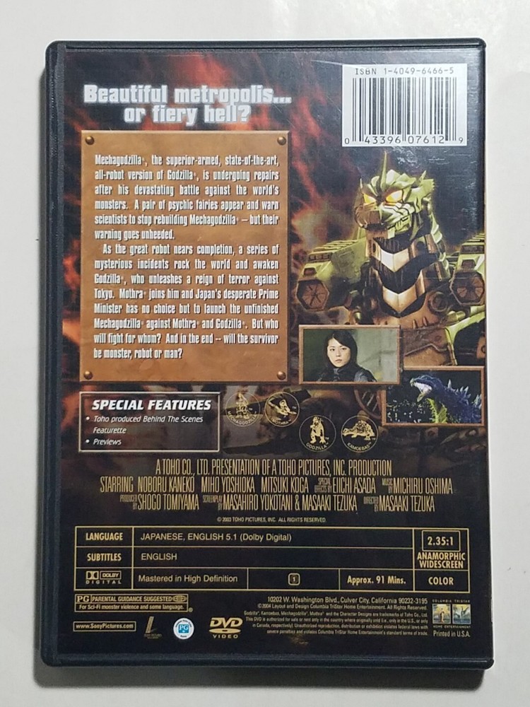 Godzilla: Tokyo S.O.S. (50th Anniversary) DVD Region 1 DVD Release Year: 2004 Movie Release Year: 2003 ****************** CONDITION and FEATURES : Please look closely at all photos; photos are considered as part of the item description. VERY GOOD! - Disc is in very good condition. - Insert is in good condition with some wear. - Case is in very good condition. RETURNS : *** Please re-read this entire listing, pay special attention to the description and double-check all photos to make sure this is the item you want... we want you to have an informed and successful purchasing experience! If you have any questions about the item, please message us prior to purchase. Thanks! Domestic Returns : BUYER PAYS RETURN SHIPPING. Accepted within 30 days after purchase if the item is returned in it's original condition. It must be returned in the same protective packaging that it was sent in. SHIPPING : WE SHIP FROM HAWAI'I! Simply due to the distance and the increased number of post office transfers, shipping is generally a little more expensive and may take an extra day or so to arrive on the US mainland (when compared to items that are shipped from within the US mainland)... season and weather-pending! BUYERS ARE RESPONSIBLE FOR PROVIDING A SECURE SHIPPING LOCATION... WE HATE "PORCH PIRATES" TOO, BUT ARE NOT RESPONSIBLE FOR THEFTS. If you would like Signature Confirmation for your package, you must contact us PRIOR to purchase so that we can make the proper price (+ $3.80), packaging, and labeling adjustments. Shipping costs include: the actual cost of shipping, plus the cost of any applicable materials used for your package such as envelopes, bags, boxes, bubble wrap, protective foam, etc. DOMESTIC Shipping : Your item will ship via USPS Ground Advantage (if 15 oz. or less) or USPS Priority mail (if 1 lb or more), within one Business Day after eBay has confirmed your payment AND mailing address. Make sure that the mailing address is fully correct; we do not ship to alternative/email-requested addresses. If you have accidentally provided the wrong address, you must cancel your order and re-purchase using the proper mailing address. Combined Domestic Shipping? Usually, we can combine items *depending on what the items are*. If the actual combined shipping cost is less than what you originally paid, we will refund the difference back to you. ****************** INTERNATIONAL SHIPPING : We use ONLY eBay International Shipping for international shipping. All requests to ship directly will be declined. BUYER is responsible for all additional International shipping fees, as well as any/all taxes and Customs/Import issues. Please understand that we (the seller) cannot control the cost of international shipping or Customs/Taxes/Import fees, as prices are determined by the US Postal Service, eBay, your local parcel delivery service, and your country's import laws. Multiple-Item Purchase for International Delivery: If you are buying more than one item from our store for international delivery, please send us a message with a list of each item that you are buying. We will create a new listing for you that will have all of the items together as one combined "lot". This will allow us to ship all of the items together and help you save money on shipping costs. How eBay International Shipping works: First, your package will be shipped to an eBay hub. There, your package will be inspected and then re-labelled with your international shipping address and tracking number. There will be an extended shipping time frame. We cannot control the extended shipping time, nor any Customs or Import issues. ************** Thanks for looking! The Pineapple Pickers