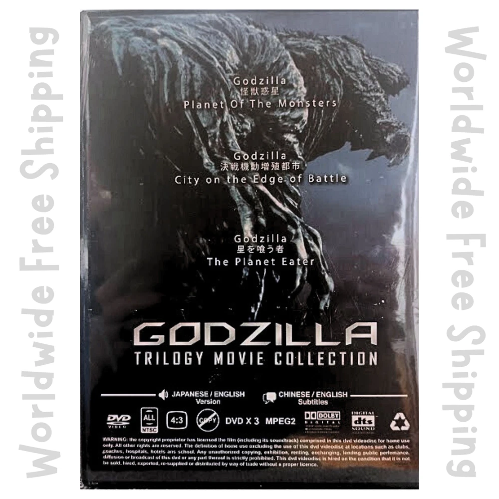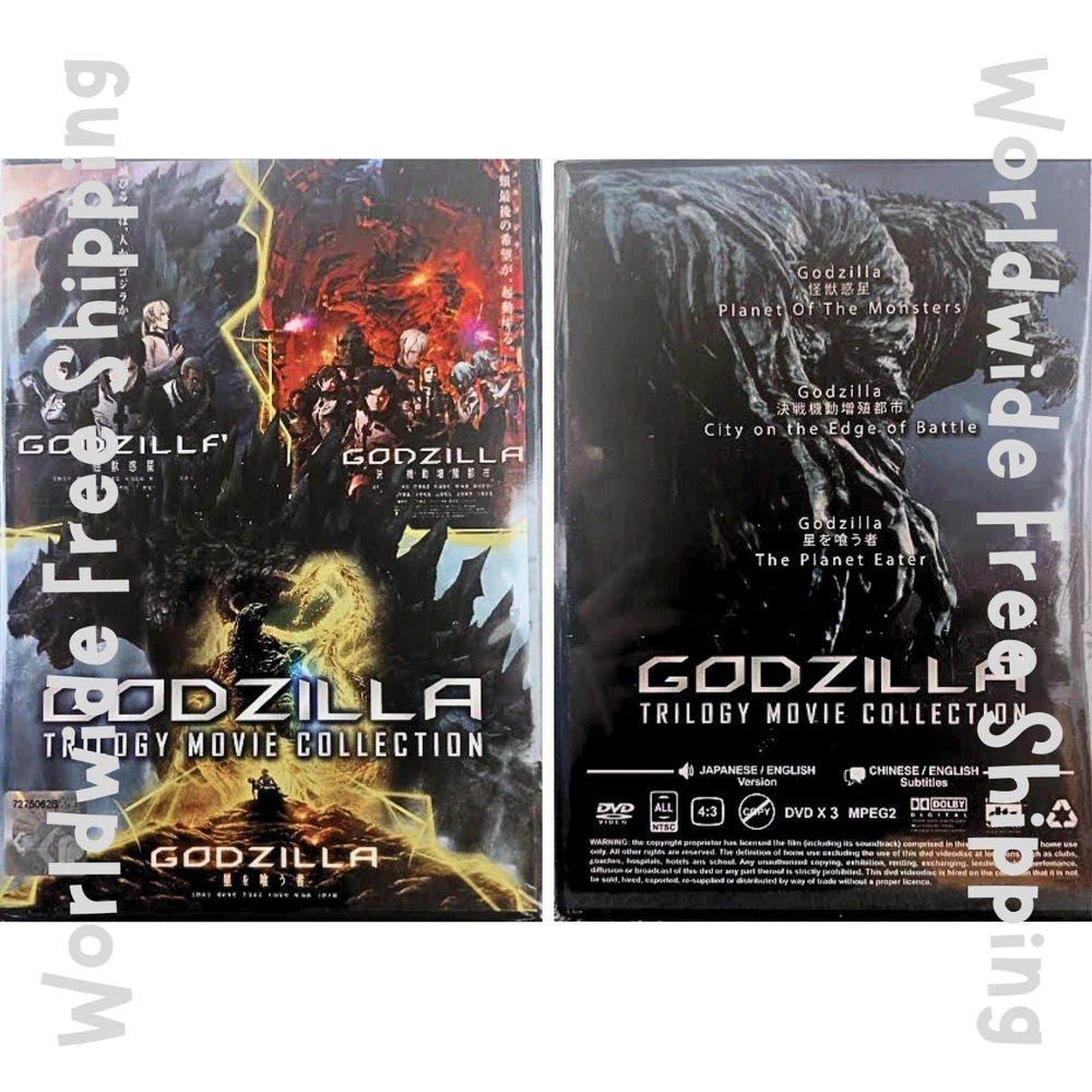 Title : DVD Godzilla Trilogy Movie Collection Weight : 171g Anime DVD: GODZILLA *** Trilogy Movie Collection *** Language: Japanese/English Subtitle: English/Chinese Media Type: NTSC; Fullscreen 4:3, All Region DVD Edition Year: 2020 No. of Disc: 3 DVD 1. Godzilla: Planet of The Monsters 2. Godzilla: City on the Edge of Battle 3. Godzilla: The Planet Eater