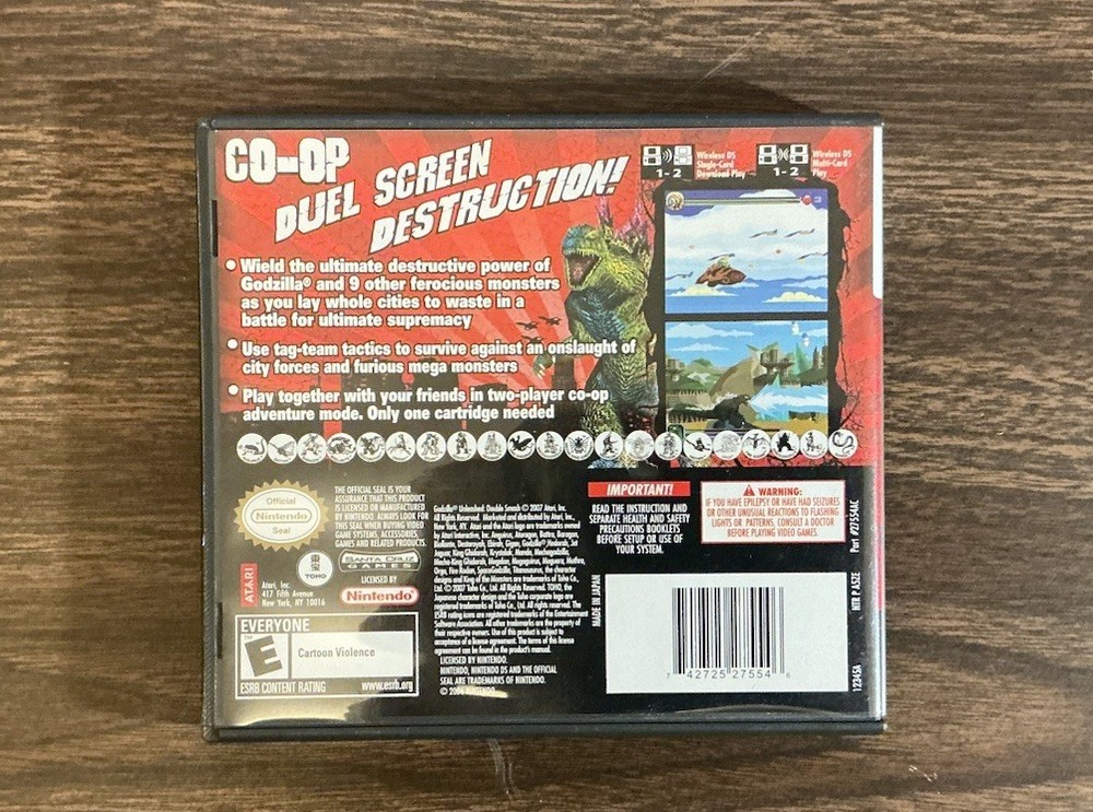Listing includes ONLY game case and manuals for Godzilla Unleashed Double Smash for Nintendo DS. There is no game cartridge included in this listing. No returns accepted, US buyers only. Please reach out with any questions, and thanks for shopping!
