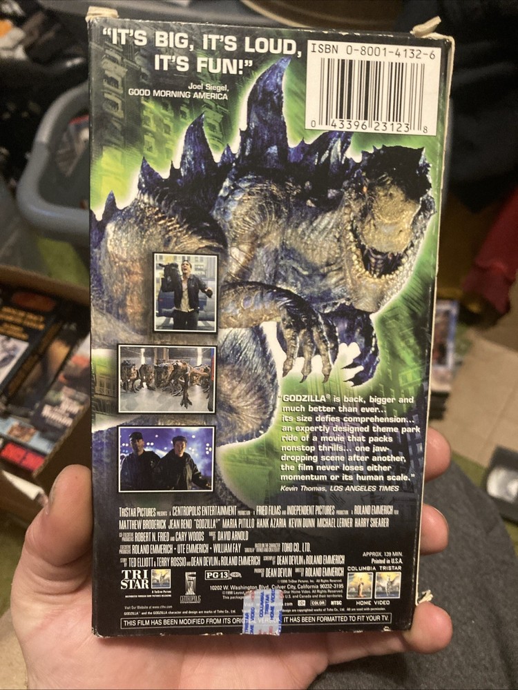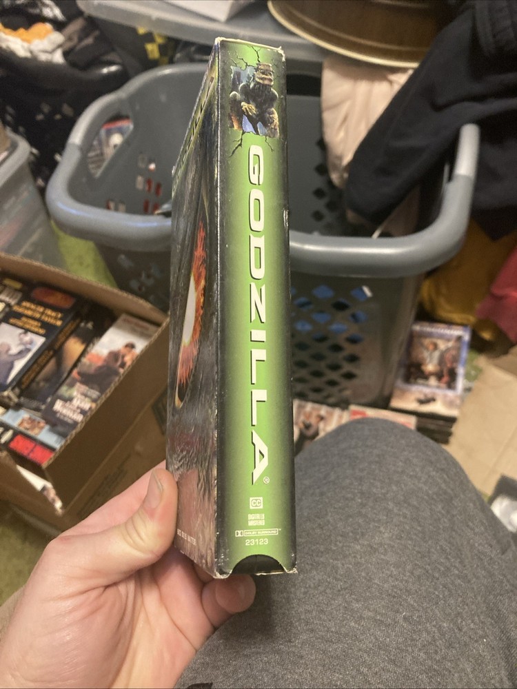 This classic VHS tape features the thrilling 1998 film "Godzilla" directed by Roland Emmerich. Starring Jean Reno, Matthew Broderick, and Maria Pitillo, this Sci-Fi & Fantasy movie is sure to captivate audiences of all ages. The tape is in NTSC format and has a rating of PG-13. The case features a 3-D design that adds an extra level of excitement for collectors and fans alike. This item is a must-have for any movie lover and is a great addition to any collection. Get ready to experience the adventure and excitement of "Godzilla" with this unforgettable VHS tape.