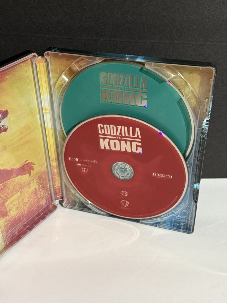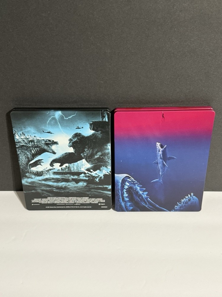This product is a Steelbook lot containing the movies Godzilla VS Kong and The Meg in 4K Ultra HD and Blu-ray formats. The discs feature English language with English subtitles, and have a PG-13 rating. The Steelbook case adds a sleek and collectible touch to the edition. This lot is sure to provide an enhanced viewing experience with its high-quality formats and genres of action and sci-fi & fantasy. The movies are region-free, allowing for enjoyment across different regions. Additionally, the discs are from Warner Bros. Home Entertainment, ensuring a reputable viewing experience.