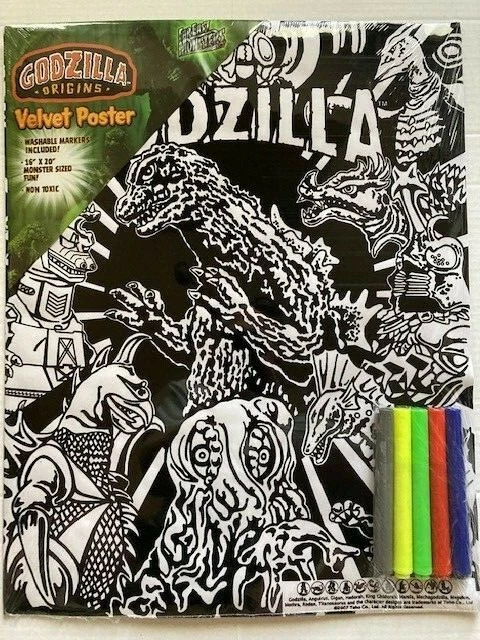 This is a velvet poster that measures 16"x20" inches. It includes 5 markers that are intended to color the poster. This item was made in 2007 so, the markers will likely no longer function. Comparable markers can be easily obtained very inexpensively. (like at a dollar store) This poster was made by Far East Monsters. They had a short run in the Godzilla business making a few light up statues, a puzzle, and a poster. All the items can be kind of hard to find now. Check out the photos...THIS LISTING IS FOR A CASE OF 24 OF THESE POSTERS.... We offer FREE SHIPPING... We are vendors at many of the toy and comic events around the USA... We are using eBay to free up some shelf space in our facility.