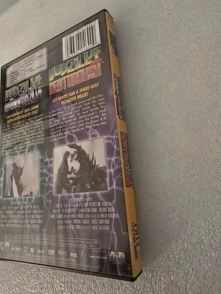 Unleash the excitement with the "Godzilla Vs. Destoroyah / Godzilla Vs. Spacegodzilla" DVD, a thrilling addition to any sci-fi horror collection. Released in 2000 and presenting the epic battles in stunning widescreen format, this DVD delivers an immersive viewing experience with an aspect ratio of 1.85:1. The film, directed by Kensho Yamashita and Takao Okawara, is a must-see for fans of the Godzilla franchise and kaiju cinema. Enjoy this monster-packed movie in English with the convenience of English subtitles, and immerse yourself in the 210-minute adventure that awaits. This DVD, coded for Region 1, comes in a tall case standard for collectors, ensuring your cinematic experience is both visually and verbally engaging.