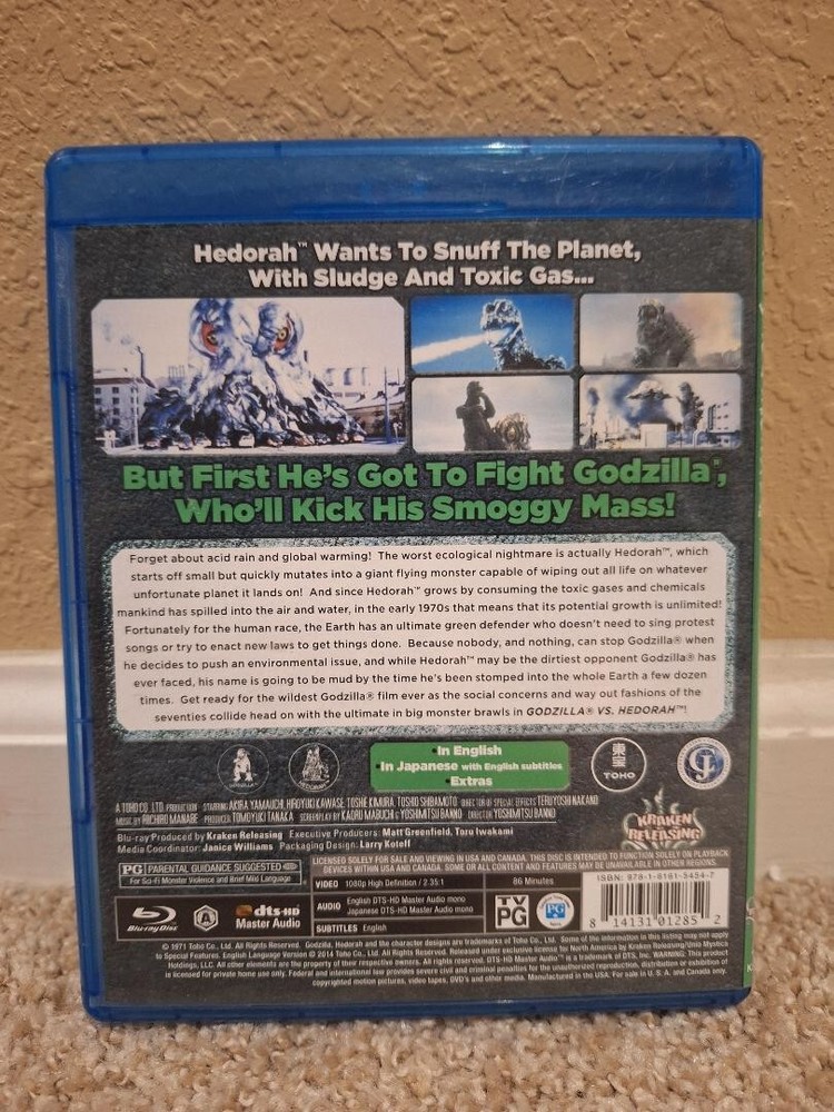 Godzilla Vs. Hedorah [The Smog Monster] (Blu-ray, 1971, Toho, Kraken Releasing) Clean Disc with no signs of use. The case has some typical signs of shelf wear....