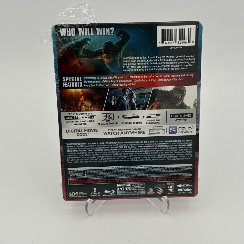 The product is a 4K UHD Blu-ray edition of the movie "Godzilla vs. Kong" featuring actor Kyle Chandler. It is a horror film with a PG-13 rating produced by Warner Bros. The Steelbook edition adds a special collector's touch to this action-packed monster movie. The film is in English language and is sure to deliver high-quality visuals and audio for an immersive viewing experience.