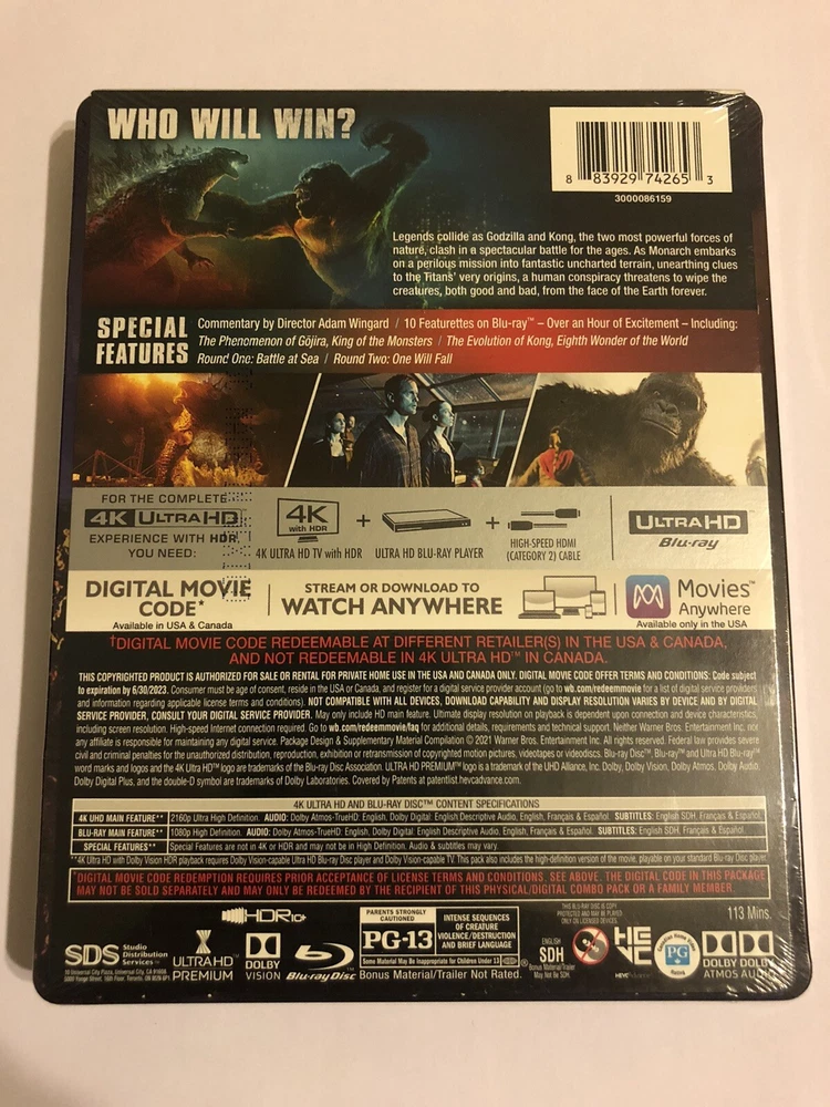 Selling a brand new Godzilla Vs Kong (4k UHD+Blu-ray+Digital) Steelbook Sealed Bestbuy. Please see pictures for more details on condition....