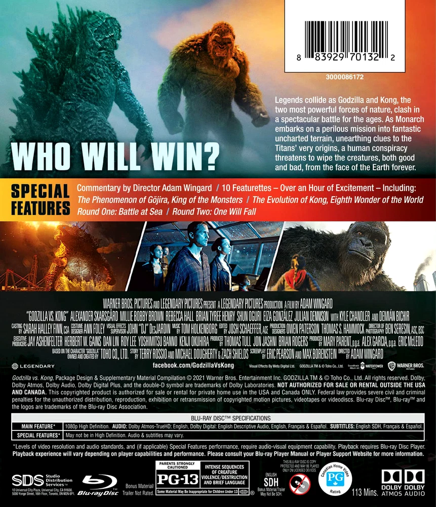 SYNOPSIS: In an ancient subterranean world deep inside the Earth lies a power source sought by a cybernetics company to combat Godzilla... and only King Kong can acquire it. The two mammoth monsters are soon going head to head, wreaking havoc on an unsuspecting Hong Kong. But they may need to combine their colossal strength when metal menace Mechagodzilla rages out of control. Fourth entry in the combined "MonsterVerse" series stars Alexander Skarsgård, Millie Bobby Brown, Rebecca Hall. - Approximate Running Time: 113 minutes / Color / Widescreen / PG-13 / 2021 Shipping ^ - Order typically "ships" within a business day after receipt of cleared payment ("Delivery" information provided below). "FREE Shipping" via USPS Media Mail ** (delivery may take up to 3-4 weeks. Other delivery options available at check out. * ) . Inventory for this item supplied by licensed &/or authorized movie dealer/vendor. No bootlegs &/or copies. Buyer responsible for correct shipping address. MOWC only ships to verified/valid eBay shipping addresses. No International or P. O. Box shipping. Combined invoicing available on multi-product purchase, to the same address, by using the "shopping cart" function. MOWC is not responsible for errors and/or omissions related to this listing. All photos are stock and may or may not accurately reflect the listed item. NOTE(S): * - Additional Fees May Apply. - ** - Due to the nature of Media Mail - MOWC doesn't participate in any delivery programs offered by third parties (ex., eBay). ^ - Shipping and Delivery defined: "Shipping" occurs upon the transfer of the sold item from the seller to the courier. Upon the item's transfer the item is considered "shipped". "Delivery" occurs upon the transfer of shipped item from the courier to the final destination (i.e., the service of transporting and delivering an item). Upon this transfer the item is considered "delivered". Seller doesn't control how or when the courier provides the service of "delivery". Delivery ^ - Seller doesn't control how or when the courier provides the service of "delivery". eBay manages, supplies and posts the estimated delivery dates (seller has no control of such information) therefore, seller doesn't "guarantee" the accuracy of the information, nor the buyer's use (expectation) of such information. Seller doesn't participate in any d elivery promotions &/or program(s) offered by third parties (ex., eBay guarantee delivery program). M ore great Movie & TV Show Titles available at MANONWESTCOAST : Click Here Be sure to add MOWC to your favorites list ! Thank you for your consideration! RETURN POLICIES On this product MOWC offer a 30 day return policy from checkout on UNOPENED items (other restrictions apply). Please contact MOWC for before returning item (unauthorized returns shall not be processed). Items defective upon receipt must be packaged in their retail packaging as if new and returned with a detailed description of the problem. To qualify for a refund, the product must be UNOPENED and returned within 30 days of checkout. Goods must be returned in the original box, in perfect re-sellable condition; unused, no seals broken and with no missing parts. Buyer responsible for return shipping & handling fees and are not refundable. In the event of an exchange the delivery & handling cost will be paid for by the Buyer. Unfortunately MOWC does not accept returns of such item(s): Health & Beauty, perishable, intimate apparel, OPENED, WORN, WASHED and/or USED item(s). MOWC reserves the right to decline any returns if the above guidelines are not followed. If the item arrives and the shipping package is damaged, please refuse the delivery so it will be returned to sender and please contact MOWC immediately.