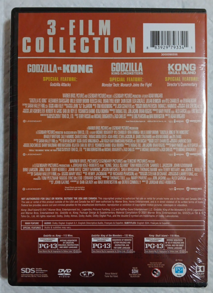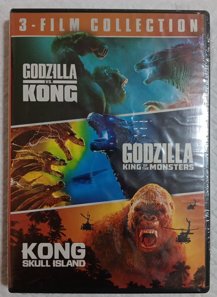 New Sealed Wrap Shelf Wear This DVD set features three epic movies about the iconic monsters, Godzilla and Kong. The set includes Godzilla vs. Kong, Godzilla: King of the Monsters, and Kong: Skull Isl...