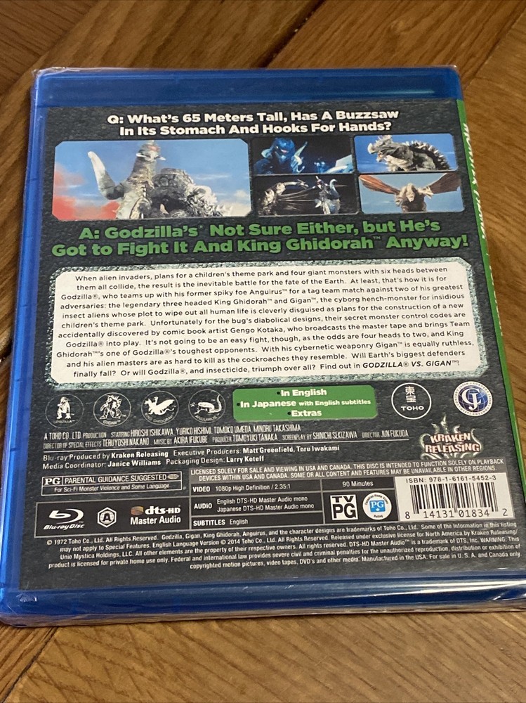 Experience the iconic battle between Godzilla and Gigan in the action-packed film "Godzilla Vs. Gigan" on Blu-ray. This standard edition, brand new release from Kracken Releasing features English and Japanese subtitles, a widescreen aspect ratio of 16:9, and a region code of A for America Starring Hiroshi Ishikawa, Yuriko Hishimi, and Minoru Takashima, this film is rated PG and runs for 1 hour and 29 minutes. The Blu-ray comes in a skinny case and is sealed, ensuring its condition as a brand new product. Get ready for a thrilling adventure filled with creatures and monsters in this must-see addition to any Godzilla franchise collection. PLEASE NOTE THAT THIS IS REGION 1 IT WILL REQUIRE A MULTI REGION PLAYER