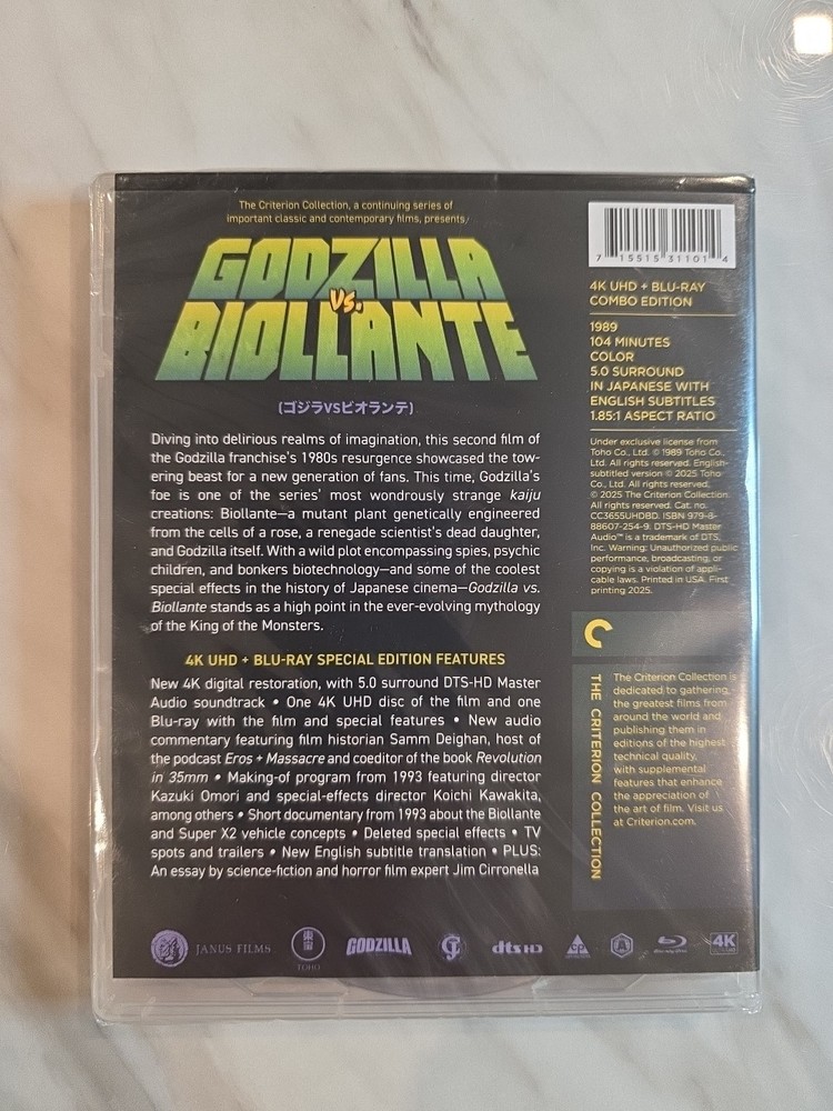 Godzilla vs. Biollante (1989) 4K UHD + Blu-ray • New • Criterion Collection Thanks for stopping by! We do accept returns as long as they are returned in the same condition that we shipped them in....