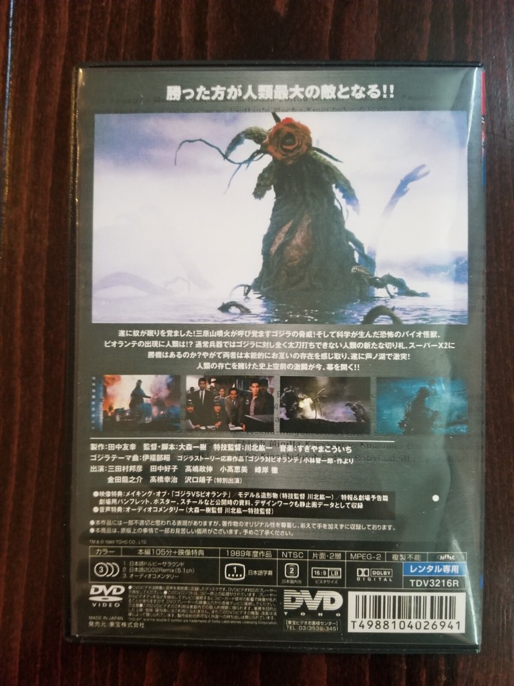 Unleash the thrill of classic Japanese monster cinema with "Godzilla vs. Biollante" on DVD. Released in 1989, this action-packed movie delivers the excitement of two iconic creatures clashing in a spectacular display of destruction and recovery. Ideal for collectors and fans alike, the DVD is region-free, ensuring compatibility with players around the world. Experience the movie in its original Japanese language with English subtitles, or delve into the widescreen edition that offers a broader view of the cinematic landscape. Crafted in Japan, this film is a must-have for those who appreciate the fusion of Godzilla's timeless allure and the unique flair of Japanese filmmaking.