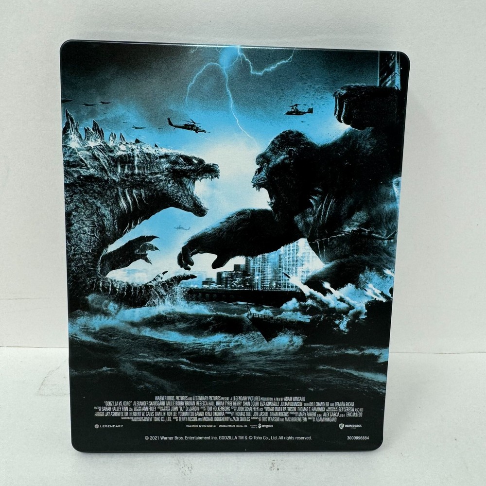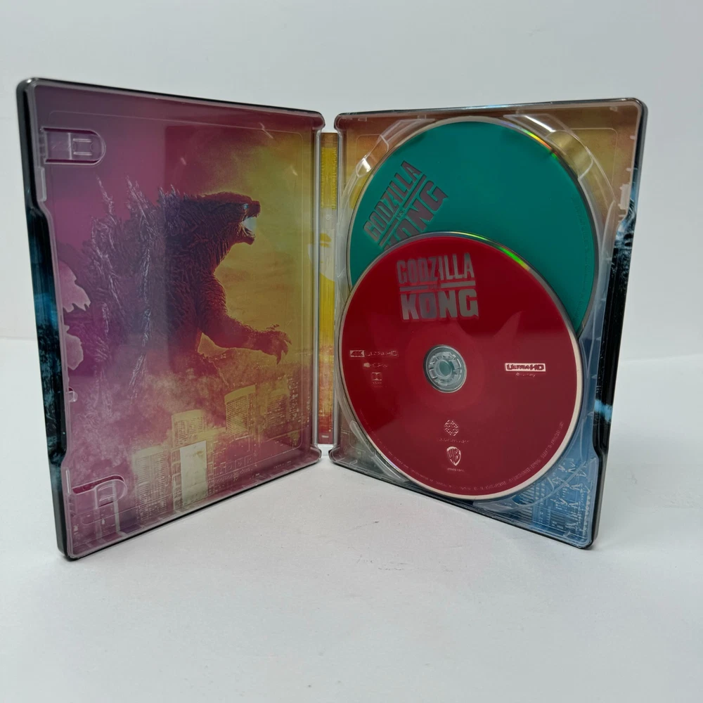 Godzilla vs Kong (2021) 4K + Blu-ray. Steelbook. No Digital or Slip. Some scratching on the steelbook that's pictured. No digital or slipcover. Does not glow in the dark. Disks in great condition and are tested and work. From a smoke free home. Will ship in a box via USPS Media Mail.