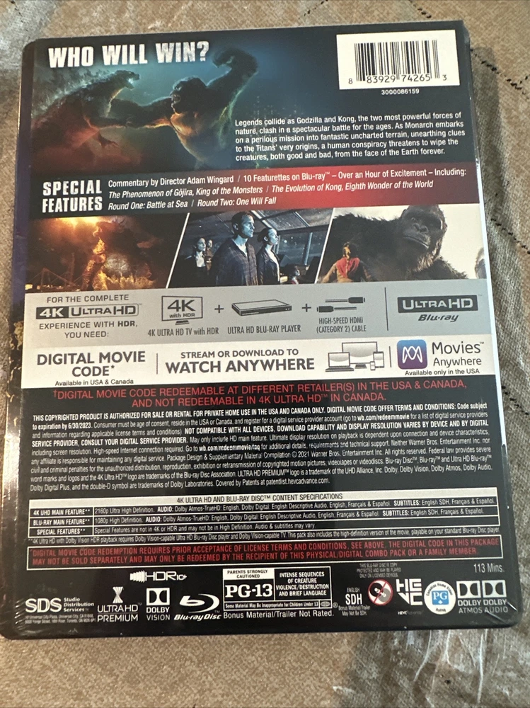 Godzilla vs Kong 4K steelbook Best Buy. Never opened. I will ship once payment is complete. Sale is final....
