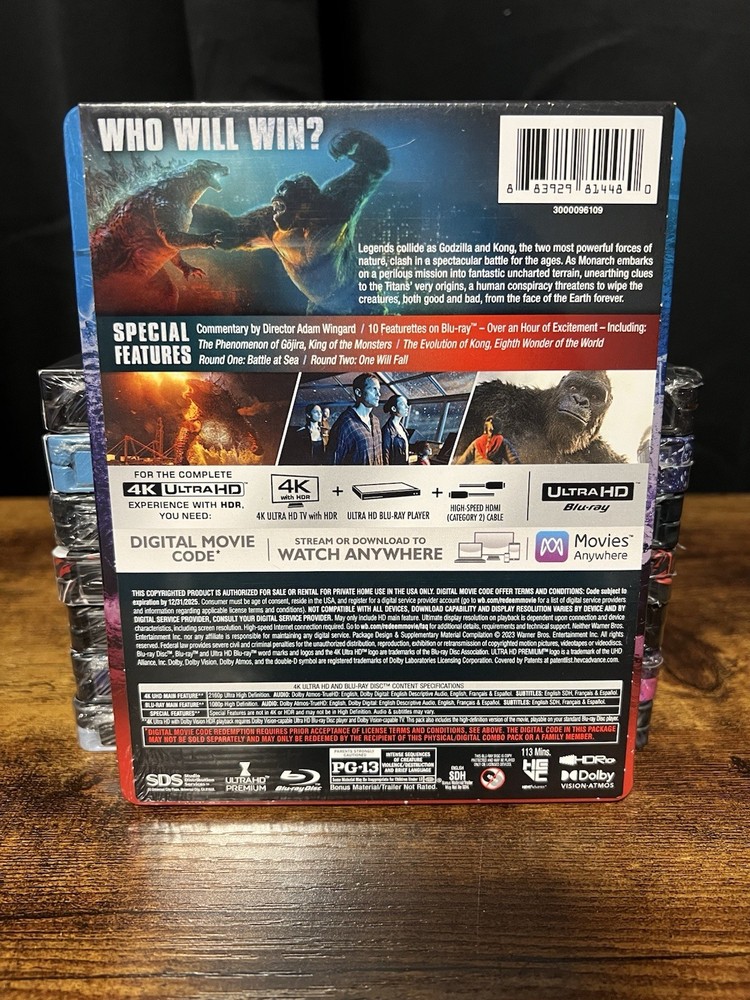 Godzilla vs. Kong (4K UHD + Blu-ray + Digital Code ) Steelbook. Condition is Brand New. Any digital code slips included (if applicable) may be expired and not redeemable. Before discarding, double check to see if still active for an extra bonus. *Please note digital codes are NOT included in purchase if product is used and has been opened* Feel free to request in detail pictures and don’t hesitate to reach out with any questions before purchasing if you’re hesitant. Thanks for checking out my listing !