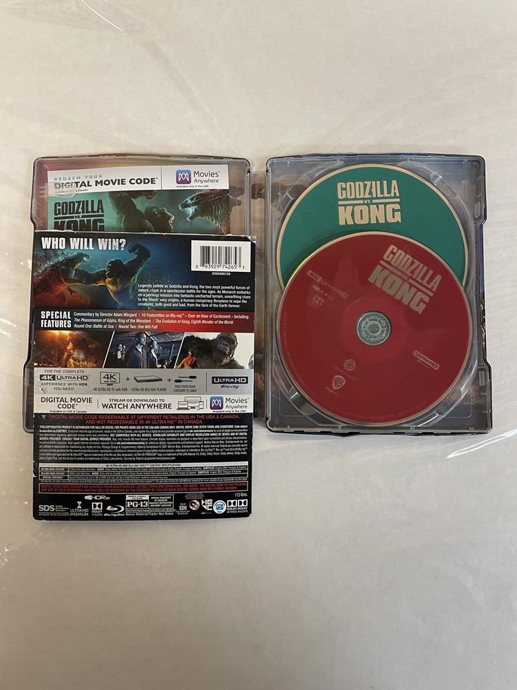 Godzilla vs. Kong 4K Ultra HD Steelbook with Digital [4K Blu-ray] Ships FREE to all U.S. Destinations 24 Hour Ship Time Monday - Friday 30 Days for Refunds & Replacements Additional Details Condition: Used Media Type: Blu-ray Region: 1 (USA and Canada) UPC: 883929742653 Studio: Warner Format: Widescreen Languages: English No. of Discs: 2 Run Time: 113 min. ABOUT US PAYMENT SHIPPING RETURNS FEEDBACK CONTACT US ABOUT US Mila Technologies has been a leading distributor of DVD and Blu-ray entertainment since 1998. Our online business was established on eBay.com in early 2010 and has been growing ever since. We are excited to bring our exclusive deals to the eBay market and our #1 goal is serving our customers with the utmost level of professionalism. Our quality product line speaks for itself, and as always we only carry authentic media direct from the studios. We look forward to continuing our excellent record track here on eBay. If you have any questions, please do not hesitate to contact us via eBay's internal messaging system. PAYMENT PayPal is a service that enables you to pay, send money, and accept payments without revealing your financial details. PayPal allows you to make payments using a variety of methods including: PayPal Balance, PayPal Credit, Bank Account, Credit Card, PayPal Cards, and Debit Card. If you are experiencing issues using this payment service, please let us know and we will do our best to assist you. SHIPPING Over 99% of our orders will ship from our warehouse in 1 business day (Monday - Friday). A tracking number will be sent via email after your order has successfully shipped. Please allow an additional day of processing during Federal Holiday closings. If you do not receive confirmation of shipment via email, please contact us for a tracking number. 'Free Shipping' offers, when applicable, only apply to U.S. destinations (includes PR, AK, HI, and APO). RETURNS Returns for refund, exchange, or store credit are accepted within 30 days of receipt*. Our hassle-free return process is as "Easy as 1-2-3" Contact us and provide your Full Name, Item Number, and Reason for return. You will be instructed where to send back your order. Please follow the instructions outlined in your response email to get your return processed fast and efficiently. We will notify you when your return is received. In addition to selecting to receive a refund, you will have the option of selecting a replacement of the original item ordered, choosing another product from our store, or receive store credit for your future purchase. * The delivery date posted on the tracking number will be used to determine return eligibility. FEEDBACK We always encourage customers to contact us if there is an issue with your order. Negative Feedback should always be a last resort. Our sales representatives are available throughout the week to assist you with any order related issues. Please note, that currently our eBay account is automatically programmed to leave positive feedback when buyers leave it for us. This lets us know that the buyer is satisfied with their purchase and that our transaction has been a mutual success. CONTACT US If you have any questions about this listing, please contact us using eBay's internal messaging system. Please remember to include the eBay item number in the subject line or body of your email inquiry if applicable. Thank you for your business here on eBay and we look forward to doing business with you. Mila Technologies Inc. 43 Glen Cove Rd Unit B Ste 195 Greenvale, NY 11548