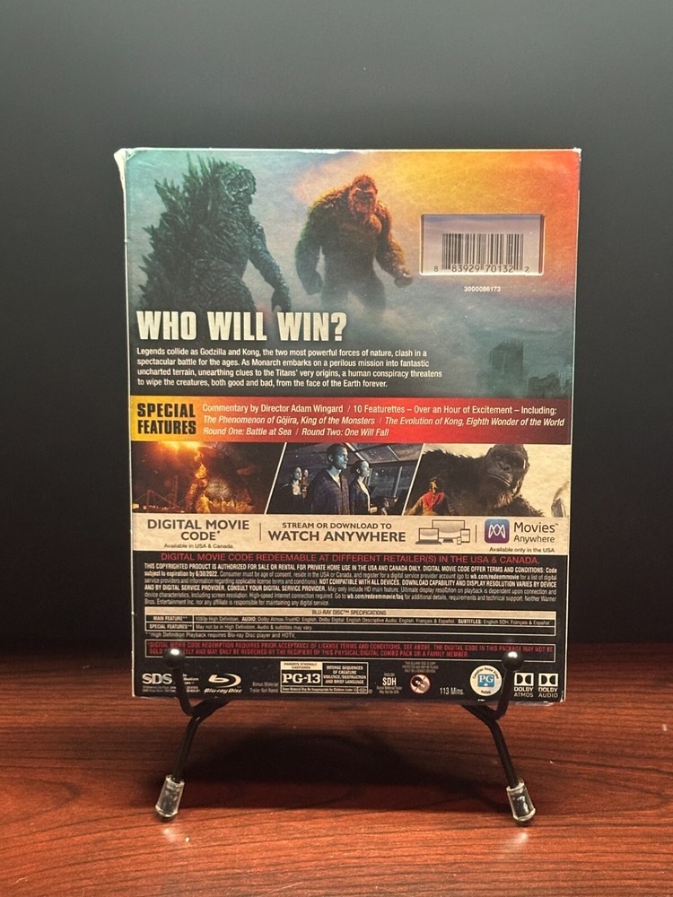 Movie Title: Godzilla Vs. Kong Grade: Brand New Case Condition: Brand New Misc: Slipcover Included DIGITAL CODES NOT INCLUDED IN OPENED PRODUCT, UNOPENED COULD BE EXPIRED. Blu Ray & DVD Grading Scale · NEW – Never Opened, still has shrink wrap. Could be slight tear in the shrink wrap. · MINT – No flaws, looks as if disc was just opened and taken out of case/box. · NM – Has light to no wear to the disc, but is close to being flawless · EXMT – Disc could have light scuff or two but does not affect play. · EX – Has some scratches to the disc, but does not affect the play. · VGEX – Has scratches on the disc but does not affect play. ****Disclaimer**** Scans can appear brighter than the actual Item in the listing. This was not intentional, I tried to get the scanner to scan closer to the actual brightness of what was scanned but the settings would not work out for me, and this was the best I could do. If you have any questions, please ask. Thank you. All Electronics, Games, CDs, DVDs, Blu-Rays, HD DVD's have been tested and work. All Games, CD’s, DVD’s, Blu-Rays, HD DVD’s, Comics, Graphic Novels, Trading Cards and Books have been inspected and graded to match grading scale as closely as possible. Positive feedback is left automatically through eBay’s automation feature when feedback is received.