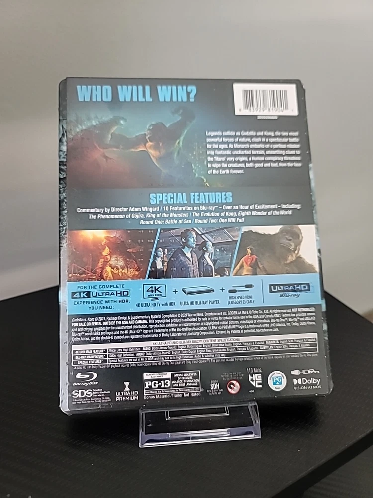 We are a liquidation company that deals with overstock and returned products. we offer free returns for all products if you are not 100% satisfied with your purchase. we thrive on making your experience as positive as possible. Experience the epic battle between two iconic movie monsters with Godzilla vs Kong in stunning 4K UHD quality. This limited edition steelbook features a glow in the dark design and includes both the 4K UHD and Blu-Ray versions of the film, along with a sleeve for added protection. Immerse yourself in the action-packed scenes and stunning visuals of this highly anticipated movie, brought to you by Warner Bros. This item is perfect for fans of the Godzilla and Kong franchises, and is a must-have for any movie collector. Don't miss out on this opportunity to own a piece of cinematic history.