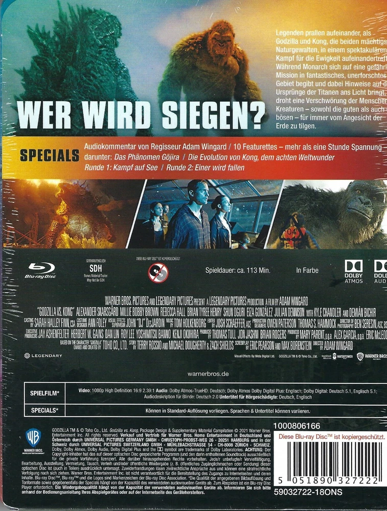 Brand New ! Factory sealed. Godzilla vs. Kong Limited Edition SteelBook ( Blu-ray ). Region Free Germany Import Blu-ray. Includes Collectible SteelBook Case ! Sold-Out / OOP ! In perfect conditions.... SteelBook & MetalPak Disclaimer: I have examined this SteelBook to the best of my ability prior to listing and have disclosed all visible imperfections (if any) in the description of the listing. Sometimes SteelBooks can have micro-dents or scratches or other flaws under the plastic wrap and/or the back information J-Card, Data Card or the SlipCover. There is no way for me to see or detect such imperfections and therefore I cannot be held responsible for any that you may find. If a disc comes loose during shipment, I cannot be accountable for this. NO Refunds will be accepted for opened items. Thanks…