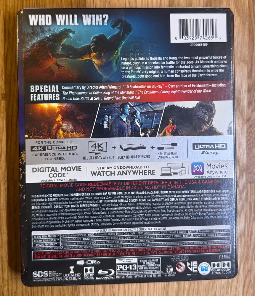 Godzilla vs. Kong Steelbook 4K + Blu-ray + Digital Best Buy New Sealed Conditions: Brand new in factory sealed Please be advised of following when buying: What you see in listing photos that you will ...
