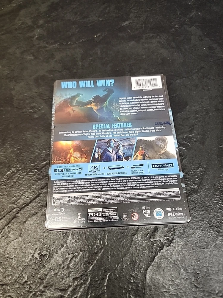 Experience the epic battle between two legendary monsters with Godzilla vs. Kong Steelbook 4K Ultra HD+ Blu-Ray. This factory-sealed edition includes the ultimate high-definition format, featuring stunning picture quality and crystal-clear sound. The steelbook design is perfect for collectors and fans alike, with a sleek and durable construction that will stand the test of time. This Blu-ray is region-locked to A (Americas, Southeast Asia...), ensuring that you can enjoy the movie in the comfort of your own home. With the movie/TV title "Godzilla vs. Kong", this edition is a must-have for any fan of the franchise. Don't miss out on this incredible opportunity to own a piece of movie history.