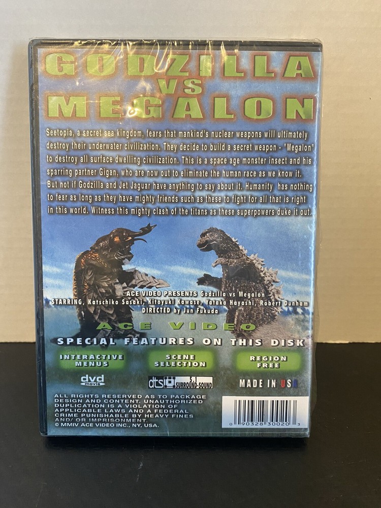 This rare DVD of the classic 1973 movie "Godzilla vs Megalon" is a must-have for fans of action and horror. The DVD is in English and features a full-screen format, making it perfect for viewing on a television. The movie is rated NR and is suitable for all audiences. The DVD is region-free and can be played on DVD players worldwide. It comes in a tall/DVD case and is brand new and sealed. Don't miss out on the opportunity to add this gem to your movie collection.