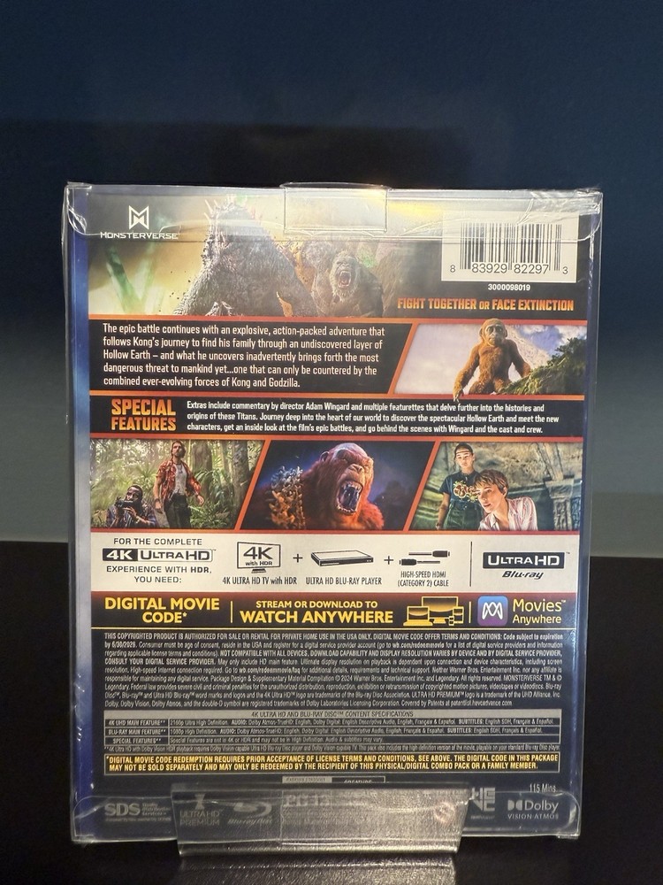 Immerse yourself in the epic adventure with the "Godzilla x Kong: The New Empire" 4K UHD Blu-ray, presented in a stunning SteelBook case, a must-have for collectors and fans. This action-packed movie, rated PG-13, brings you the thrilling collision of monsters and spectacle that will captivate you from start to finish. Directed by Adam Wingard and brought to you by Warner Bros. Home Entertainment, this 2024 release ensures a high-quality viewing experience with English subtitles and audio. With a runtime of 114 minutes, the film is a perfect blend of science fiction and fantasy elements, providing an unforgettable visual and narrative journey.