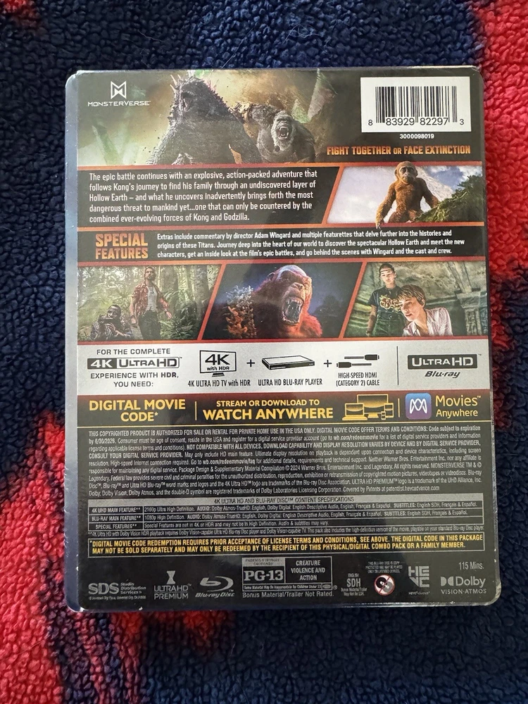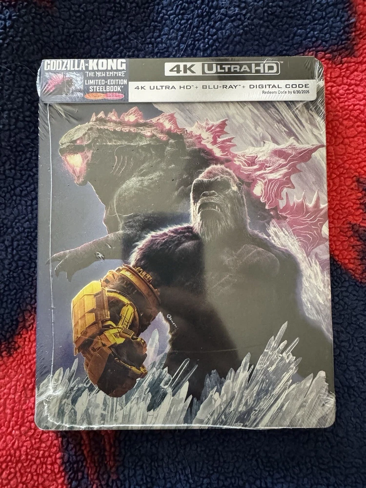 This auction is for “Brand New" copy of GODZILLA X KONG: The New Empire in the Walmart exclusive 4K Steelbook packaging with a UHD disc, Blu-ray, and Digital HD. There does not appear to be any visible dents or damage to the case. Additionally, the condition under the j-card and the shrink wrap cannot be guaranteed. This steelbook will be protected and shipped in a box. NOTE: Though this item is Brand New, the ability to redeem any digital version of the product is not guaranteed by the seller. This out of print steelbook comes from a smoke-free, private collection. Payment: Several options available through eBay’s "Managed Payments" program. Shipping: United States only or through the eBay International Shipping Program; additionally, and unless otherwise specified, shipping is done using Media Mail. While not the fastest service, the use of this method allows me to better secure packages and slipcovers, if applicable, between cardboard or ship in a box. I do not simply stick movies or other items loose in bubble mailers as doing so would likely result in transit damage (i.e., slipcovers which are often important to buyers). By using cardboard for protection, or boxes when necessary, these decisions increase the weight, and I am able to offset increased shipping costs by using Media Mail while not sacrificing an item's protection. Thank you for your time, consideration, and patronage.