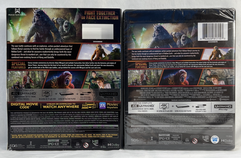 Godzilla x Kong The New Empire 4K UHD Blu-ray 4K is Brand New and Factory Sealed! The Slipcover Sleeve Has Damage, Creases, Wear, See Pictures.