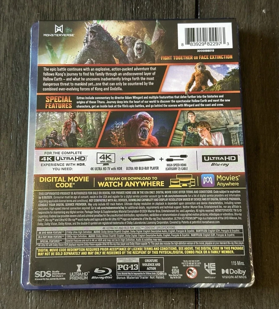 This limited edition SteelBook case contains the highly anticipated Godzilla x Kong: The New Empire on 4K Ultra HD and Blu-ray. Directed by Adam Wingard, this action-packed Sci-Fi & Fantasy movie is rated PG-13 and features English subtitles. The movie is produced by Warner Bros. Home Entertainment and is set to release in 2024. The case is a must-have for collectors and fans of the Godzilla and King Kong franchises. With a run time of 114 minutes, this movie is a perfect addition to any movie collection. The SteelBook case is manufactured in the United States and is compatible with 4K UHD Blu-ray players. Get your hands on this exclusive case and enjoy the ultimate viewing experience.