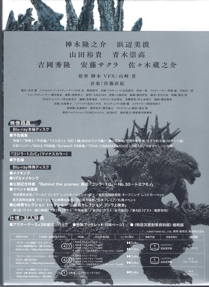 Brand New ! Factory sealed. Godzilla-1.0 (Minus One) 3-Disc Limited Deluxe Edition Digipak ( Blu-ray ) . Region A, B & C Japan Import Blu-ray. Includes Collectible Embossed Treatment Full SlipCover Outer Case, 3-Disc Digipak w/Special Booklet, Japanese Original SteelBook Case, Acrylic Stand w/Visual Sheet & Manufacturer's Bonus Famous Quote Sticker ! OOP / Sold-Out ! The SteelBook Case Came w/Small Dented Area to the Front of the SteelBook Case due to Original Packaging Transit ! ... SteelBook & MetalPak Disclaimer: I have examined this SteelBook to the best of my ability prior to listing and have disclosed all visible imperfections (if any) in the description of the listing. Sometimes SteelBooks can have micro-dents or scratches or other flaws under the plastic wrap and/or the back information J-Card, Data Card or the SlipCover. There is no way for me to see or detect such imperfections and therefore I cannot be held responsible for any that you may find. If a disc comes loose during shipment, I cannot be accountable for this. NO Refunds will be accepted for opened items. Thanks…
