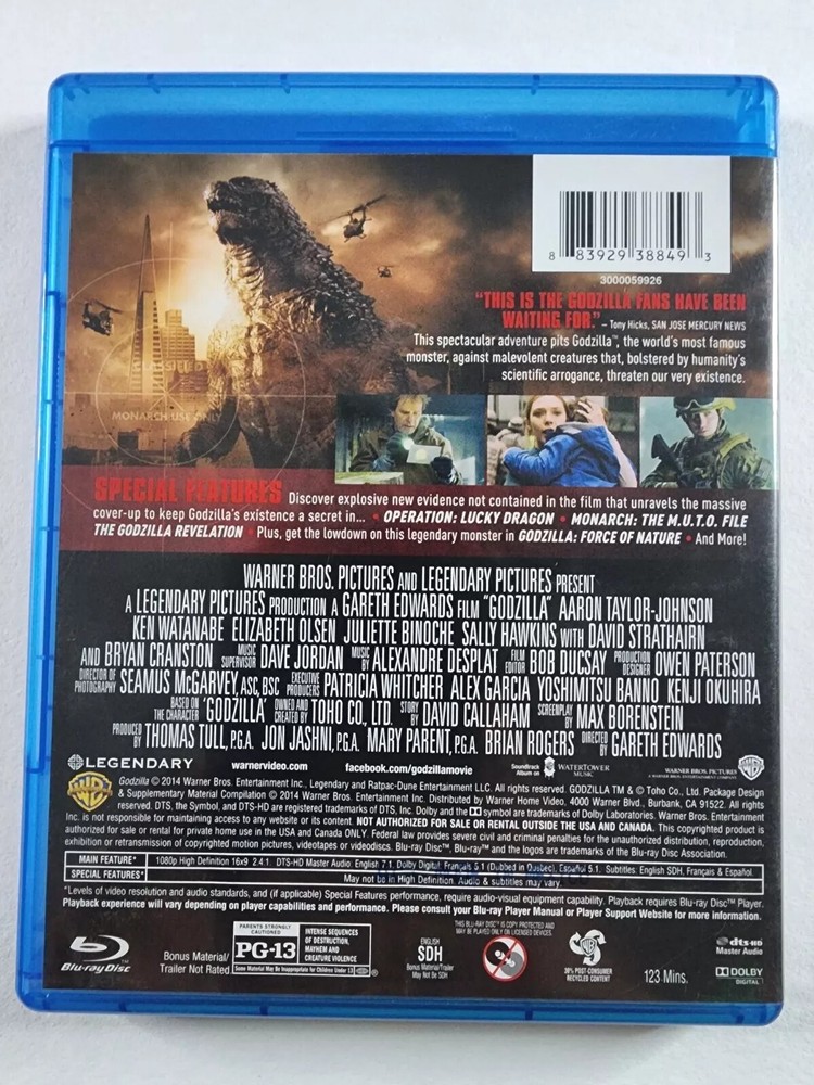 Experience the thrill of the sci-fi genre with the Godzilla 2014 Blu-ray edition. This 2-disk set features an aspect ratio of 16:9 and a run time of 123 minutes, making it the perfect addition to any movie lover's collection. Directed by Gareth Edwards and produced by Thomas Tull, this movie stars Aaron Taylor Johnson and boasts a PG-13 rating. The Blu-ray format ensures high-quality picture and sound, while the special features provide an exciting bonus for fans of the franchise. This standard edition comes in a Blu-ray case and is region coded for the Americas and Southeast Asia. Don't miss out on the chance to add this must-see movie to your collection today!
