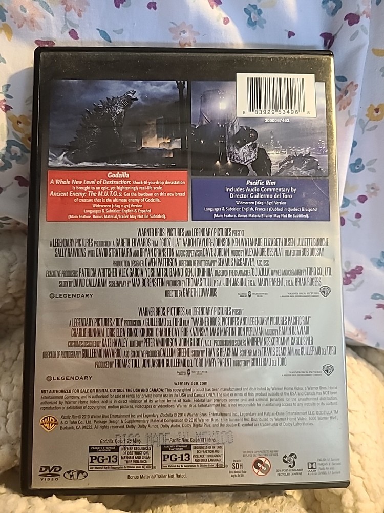 The "Godzilla-Pacific Rim" DVD is a double feature edition featuring two action-packed movies directed by Guillermo del Toro and Gareth Edwards. The films included are part of the Godzilla and Pacific Rim franchises, showcasing creatures, monsters, aliens, and epic battles. The DVD includes a PG-13 rating and offers subtitles in English, French, and Spanish, making it accessible to a wider audience. With a total run time of 254 minutes, this DVD is a must-have for fans of action, adventure, horror, and science fiction genres.