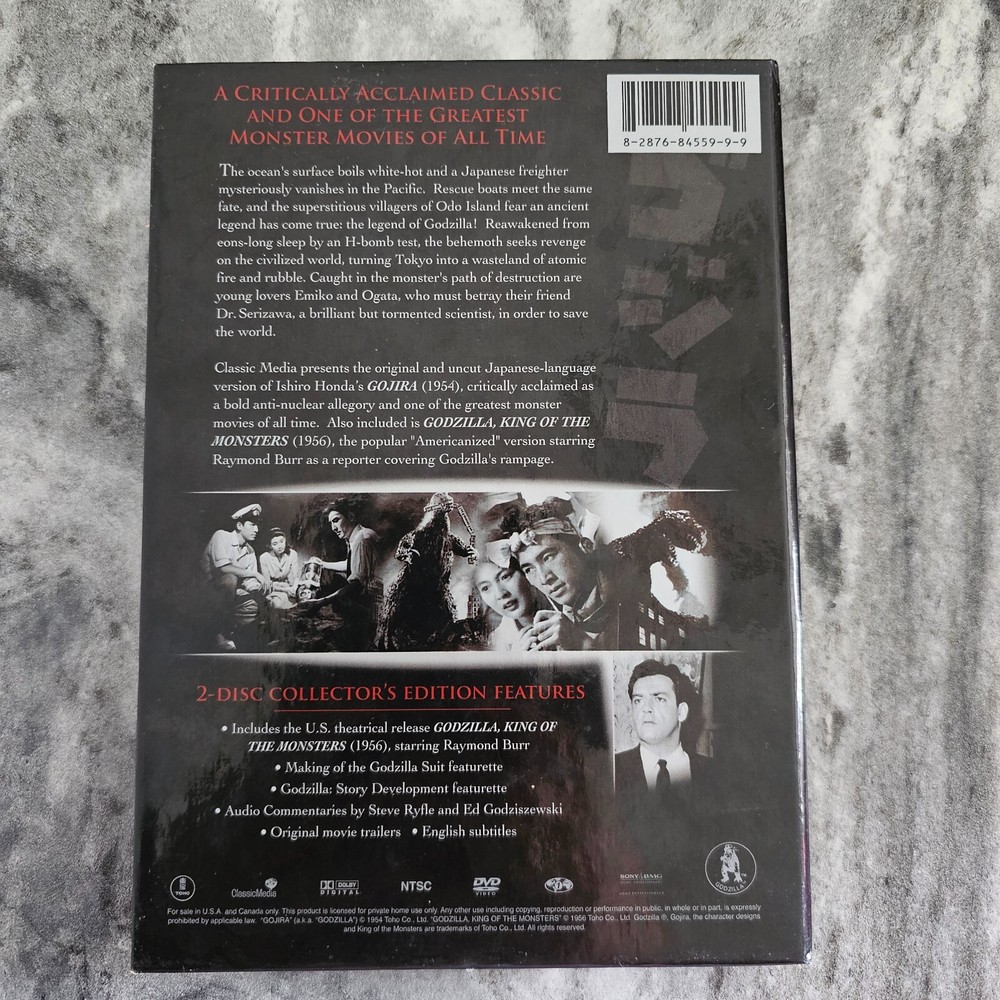 Gojira / Godzilla DVD 2-Disc Set Original Japanese + American Versions Includes Booklet Buy vintage/secondhand and give a second life to an existing item that could have ended up in a landfill DESCRIPTION : In good pre-owned condition - Disc 1 has a few light surface scratches - no major flaws - normal wear from play/handling/age/storage Descriptions are based solely on my opinion. Please see all pictures, as they are part of the description Measures approximately: see pictures Photo props/tape measure NOT included Please note: Due to difference in screen resolution, the colours may appear lighter or darker in person PLEASE READ : I AM NOT AN EXPERT! You are buying a VINTAGE item that will most likely have flaws such as writing, chips, stains, tears, cracks, dust, crazing, fleabites, etc.. I do my best to ensure that the photos show all aspects of the items so that any major flaws are visible in the pictures. If you wish to view additional photos of the items or would like more information please contact me. All vintage items are sold "as is" with absolutely NO RETURNS RETURN POLICY (doesn't apply to vintage items, DVDs, CDs, patterns, magazines, books - they are sold "as is" condition) The buyer pays for the return shipping All returns must including insurance and tracking number Exchange for defects or wrong items will be granted at no extra charge to buyer A 75% refund will be granted for non-defective remorse buys or if item was purchase by mistake Items must be in their original packaging which must be in the original undamaged condition Items must have all original tags and labels still attached Once I receive the item, I will notify you on the status of your refund after inspecting the item SHIPPING INFO : Refunds will not be issued for delayed shipping as it is out of our control at this time. Please be patient for your order to arrive. I have no control over when Canada Post delivers the package containing your order to you. Once I have received your order, I will process it, and I will drop it off at the post office within 2 business days. COMBINE SHIPPING INFO : Check out the other items listed in my store. Unfortunately, media mail rate is NOT available in Canada. If you purchase two or more items, I will do my best to combine shipping on multiple orders, if possible. *** From a pet friendly (a 11 yr old Labradoodle named Raven), clean, and smoke-free home *** ***New items will be added constantly - be sure to check back often!***