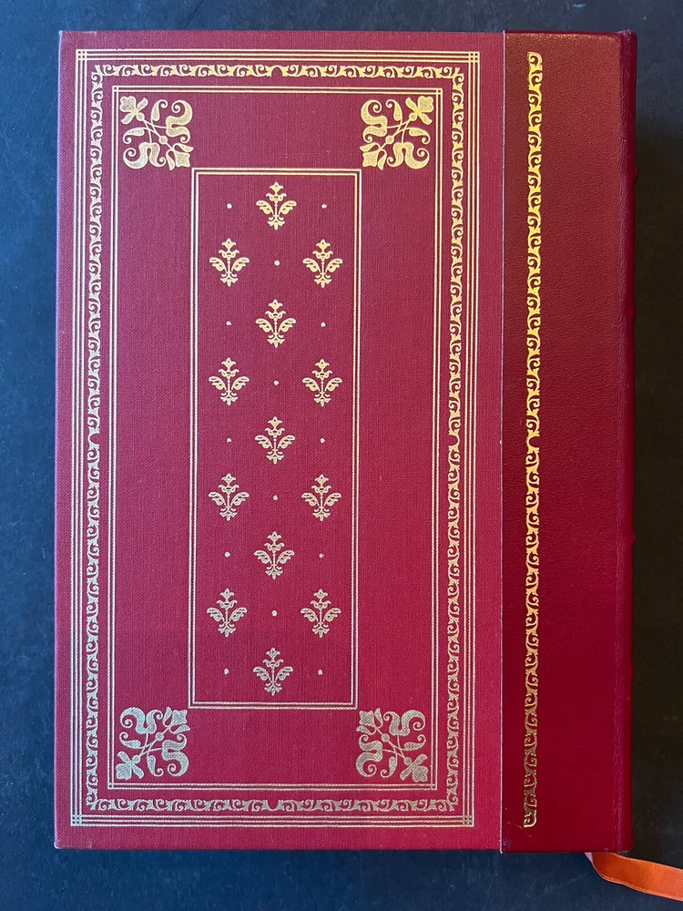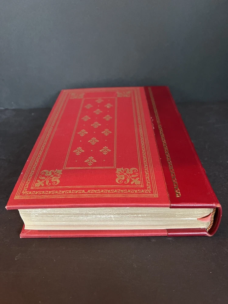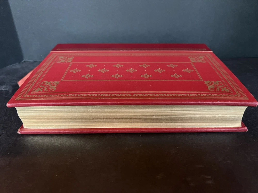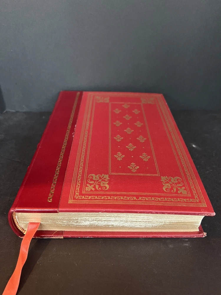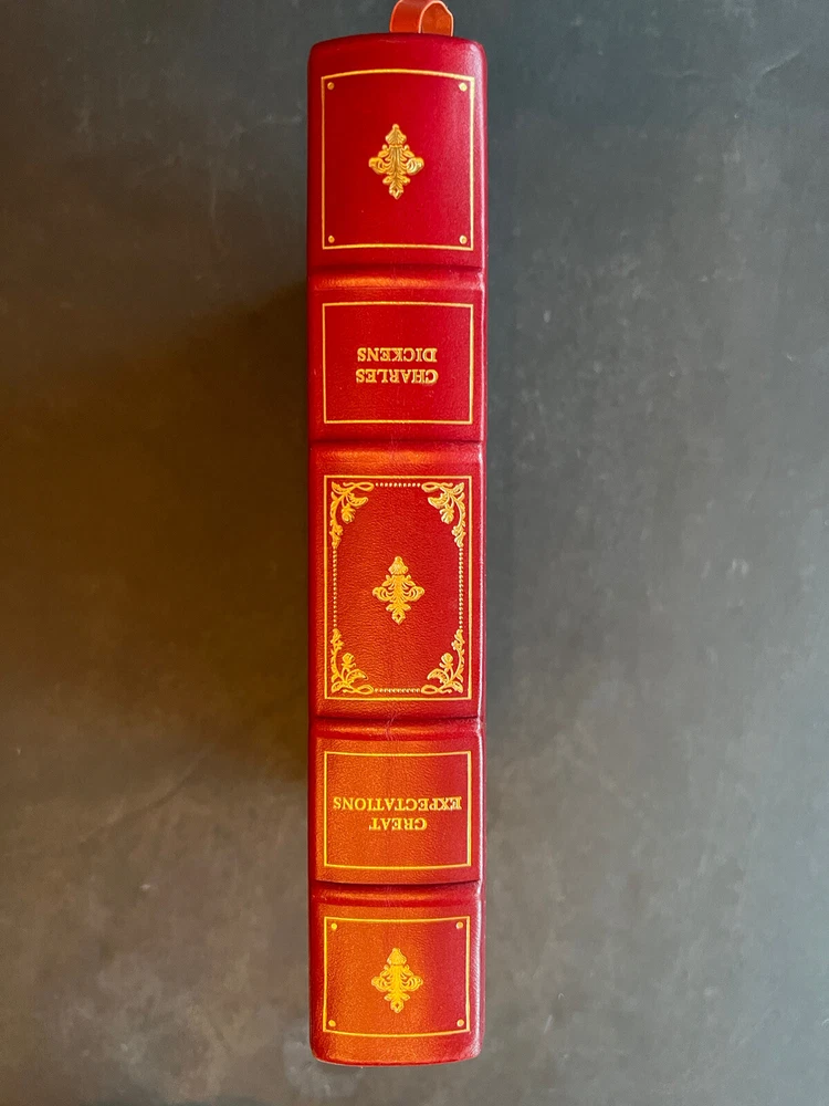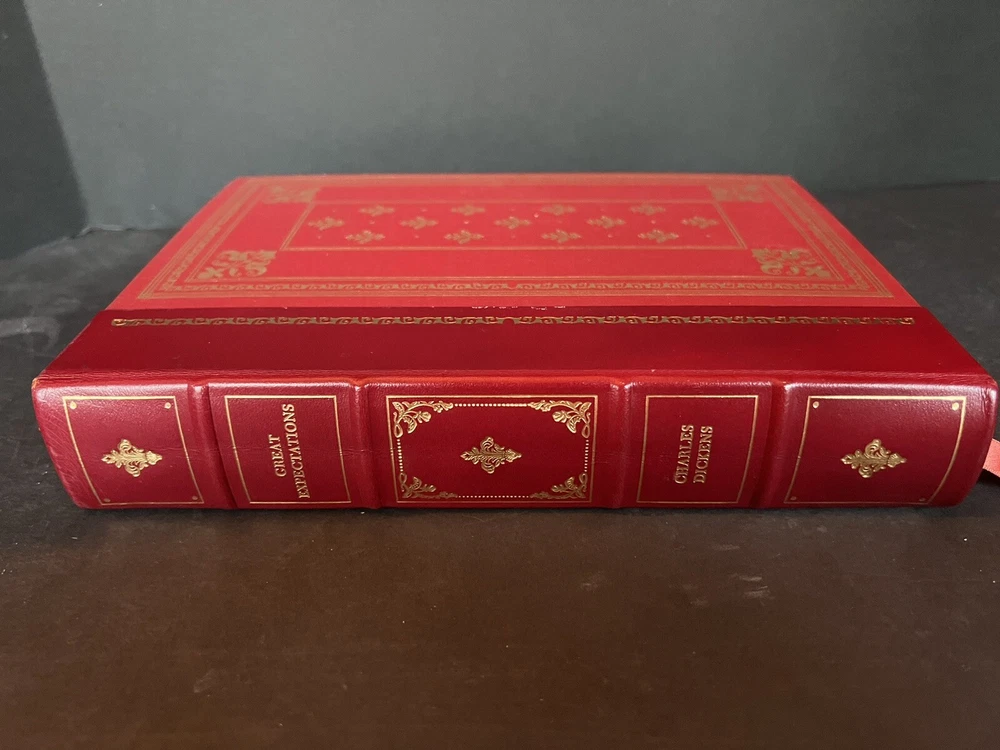Great Expectation by Charles Dickens , Franklin Library Hardcover, Leather Bound Hardcover, Leather Bound, Illustrated (A2.4.3) Great Expectation by Charles Dickens -1979 The Franklin Library Beautiful hardcover book bound in gilt-decorative full genuine leather with gilt spine lettering, all edges gilt, silk bookmark. Raised bands on spine. Wonderful production quality. Condition: Book is in Fine condition. No inscriptions, plates, imprints, notations, underlining, highlighting, or writing of any kind. No foxing. Minimal Shelf Wear to Edge Bottom - see photos 526 Pages Appears used as Decor - Never Read Please review all photos, as they are part of the description