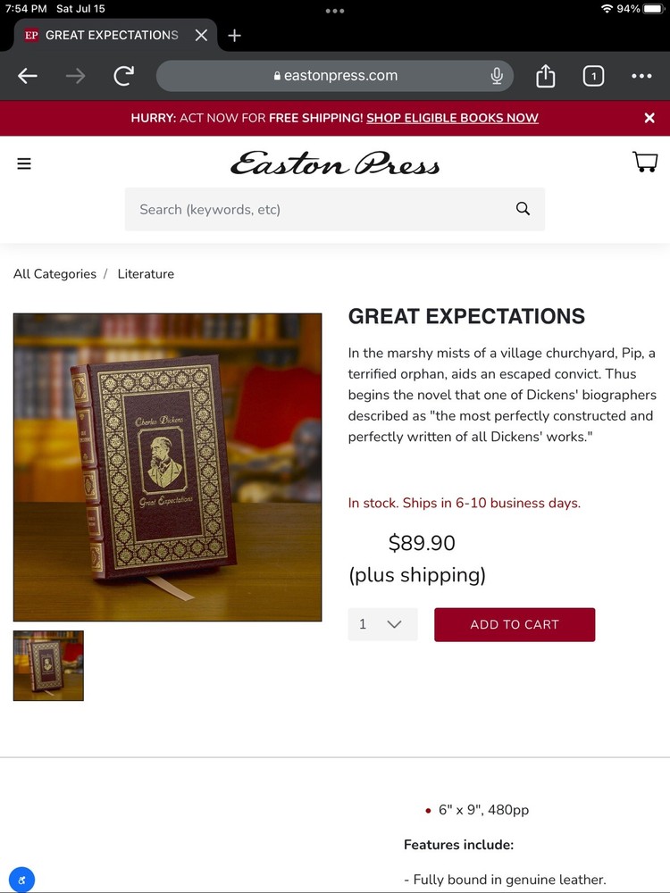 Great Expectations Charles Dickens 1979 Easton Press Leather Bound Collectors Ed. Shipped with USPS Media Mail....