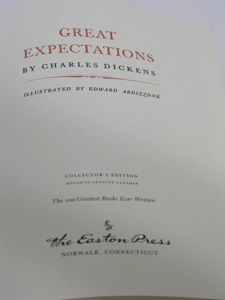 This is an estate sale item. Great Expectations by Charles Dickens Easton Press Collector's Edition Leather 1979. This book is bound in genuine leather and is in wonderful condition. It has color illustrations and would make a great addition to any library. BIN (Buy It Now) for only $45. Super-size pictures for close-up details. Jewelry items come in a gift box and are then carefully packaged in a bubble mailer. Everything ships within 48 hours. Tracking is provided. I take great care in packaging so that my items make it safely to their new homes! I also use recycled materials whenever possible. Please pass it on by reusing what you receive from me. Please remember most all my items are vintage & estate found, therefore do not expect perfection, as they may show some signs of wear or imperfections only adding to the character and authenticity. I do my best to accurately describe and photograph all my items. Please message me with any questions. Thank You!.