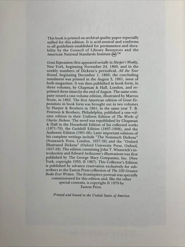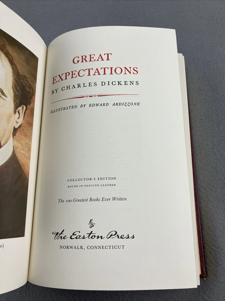 Great Expectations by Charles Dickens Easton Press Leather Hardback Brown VERY GOOD CONDITION -- CLEAN COPY/NO MARKINGS ON THE INSIDE (see pics) *Item will be protected well for shipping and comes with a tracking number for confirmation.* I ship out items every day so expect a quick delivery!