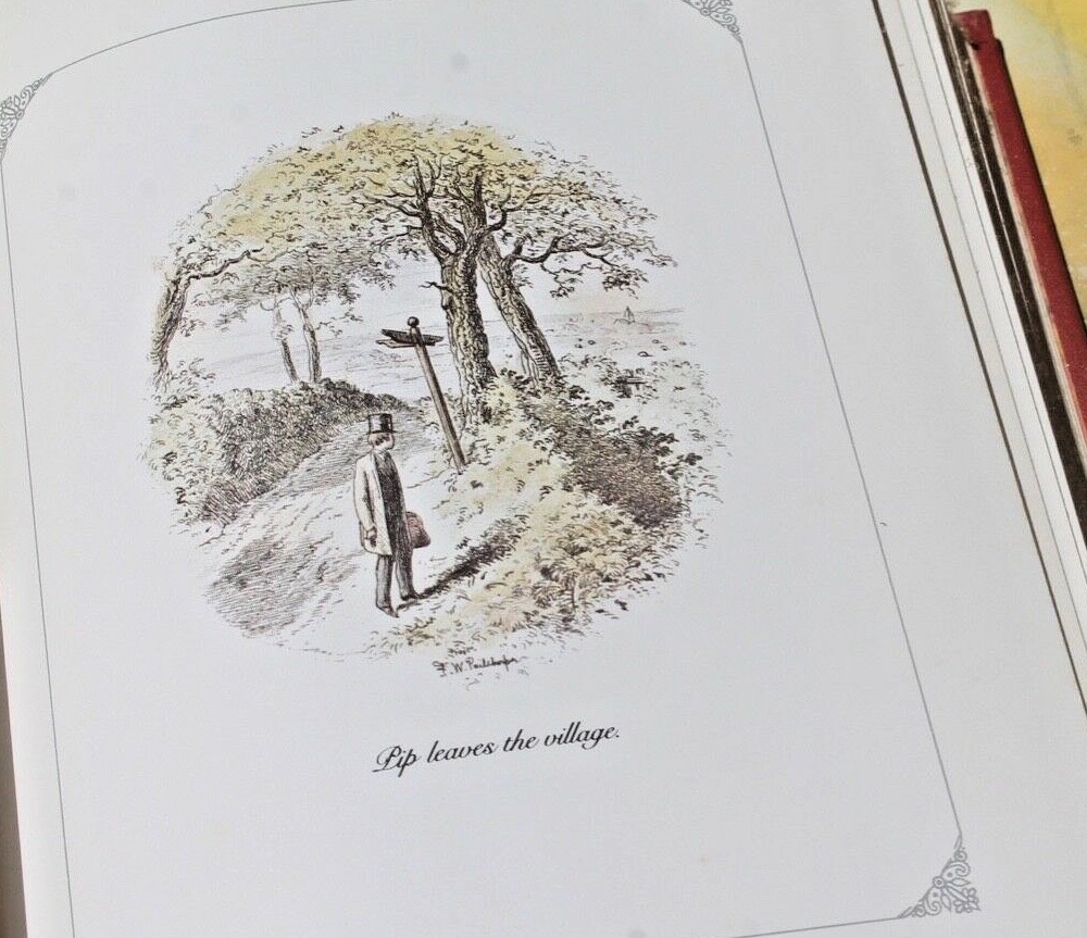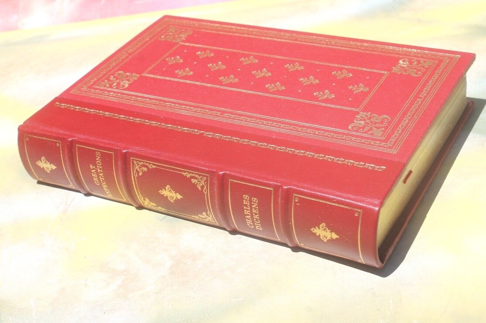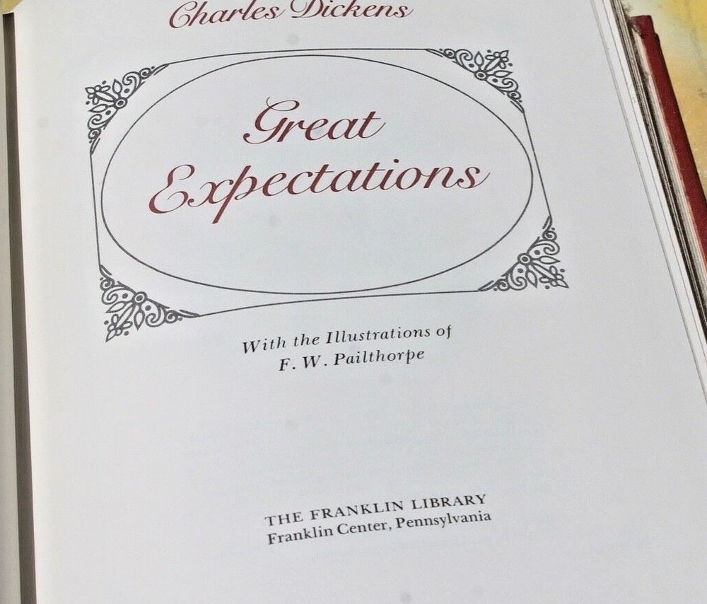 Great Expectations by Charles Dickens, Franklin Library Leather/Cloth Bound 1979 NOS NOS Excellent; etching reprints! Free ship~mainland America $31.95 New old stock/unused PRISTINE, unopened Great Expectations by Charles Dickens, Franklin Library Leather/Cloth Bound 1979, binding is leather bound with leather wrap arounds on front/back cover boards that meet with treated red linen fabric, gold gilt on binding edge + front/back cover boards, gold gilt page edges, ribbon marker in original NOS position/condition, clean, marble print lined cover pages front/back, no smells, etching reprints hand colored by artist F. W. Pailthorpe, Collector’s Edition, 526 pages, please review photos/they’re part of our item description, selling AS IS. 9 x 6.5 x 1.5; USA; 2.15 *[A021book.vtg-29] Smoke~free & pet~free home. ?'s~please message via eBay. Usually ship within 1 business day of cleared payment~please pay at appointed time so we can ship ASAP! Free shipping to mainland America~International shipping via eBay GSP. Most items ship via Priority~some boots, clothing, rubber stamps, shoes and/or fabric items ship via 1st Class~some books, movies, paper items ship via Media mail. Insurance & tracking on almost all shipments ( why we prefer Priority ) ; U.S.A. totals over $150 will be sent with signature confirmation. We may use clean recycled packing materials~we view this as wise stewardship~if this offends, please notify upon payment. Our items are packed with appreciation for our customers & shipping care~we want you to come back. Feedback is appreciated & graciously returned! Would you be so kind to visit our store and/or sign up for our newsletter and/or add us to your favorites? We acknowledge our lack of skill with photography~please overlook our mistakes. We aren't experts at anything~if you can teach us something about our listings~please do so, we welcome your input. Thank you for considering our listings & for your patronage! Track Page Views With Auctiva's FREE Counter