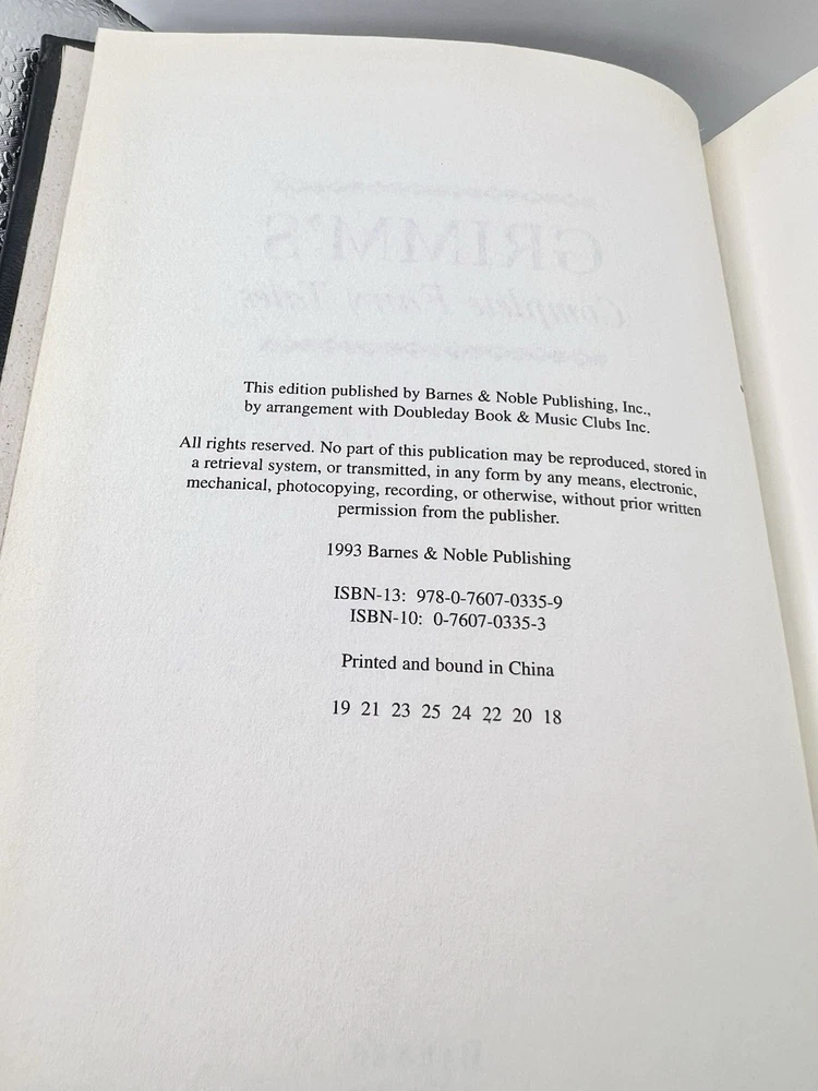 Dive into the timeless world of enchantment with Grimm's Complete Fairy Tales from the 1993 Barnes & Noble Edition. This leather hardcover vintage collection brings together the iconic tales that have captivated young adults and adults alike for generations. With 628 pages of rich storytelling, the book measures 9.5 inches in height, 6.25 inches in length, and 2 inches in width, making it a substantial addition to any literary enthusiast's library. Published by Barnes & Noble, Incorporated, this edition preserves the classic narratives in the original English language, ensuring the magic and wonder of Grimm's Fairytales are intact. It is a non-personalized, complete set that is perfect for those who appreciate the art of fiction and the roots of literary collections. Whether it's for reading or display, this book is a treasure trove of folk tales, legends, and mythology. Condition: Very good pre-owned. Please see photos.