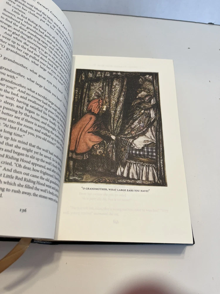 Dive into the enchanting world of whimsy with "Grimm's Complete Fairy Tales," presented in a stunning hardcover edition by Barnes & Noble. This treasure of classic storytelling features the gold gilt decorative cover that makes it a remarkable addition to any bookshelf or collection. The tales, steeped in fantasy and wonder, are accompanied by the illustrious artwork of Arthur Rackham, adding a visual feast to the literary journey. Published in the United States and bound in a durable hardcover, this volume is a testament to timeless tales passed down through generations. It invites readers to explore the magic and imagination that has captivated children and adults alike for centuries. With its focus on children's literature, it promises to be a captivating read for all ages. (Description generated by AI)