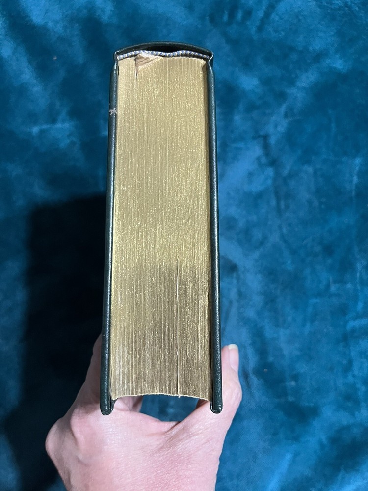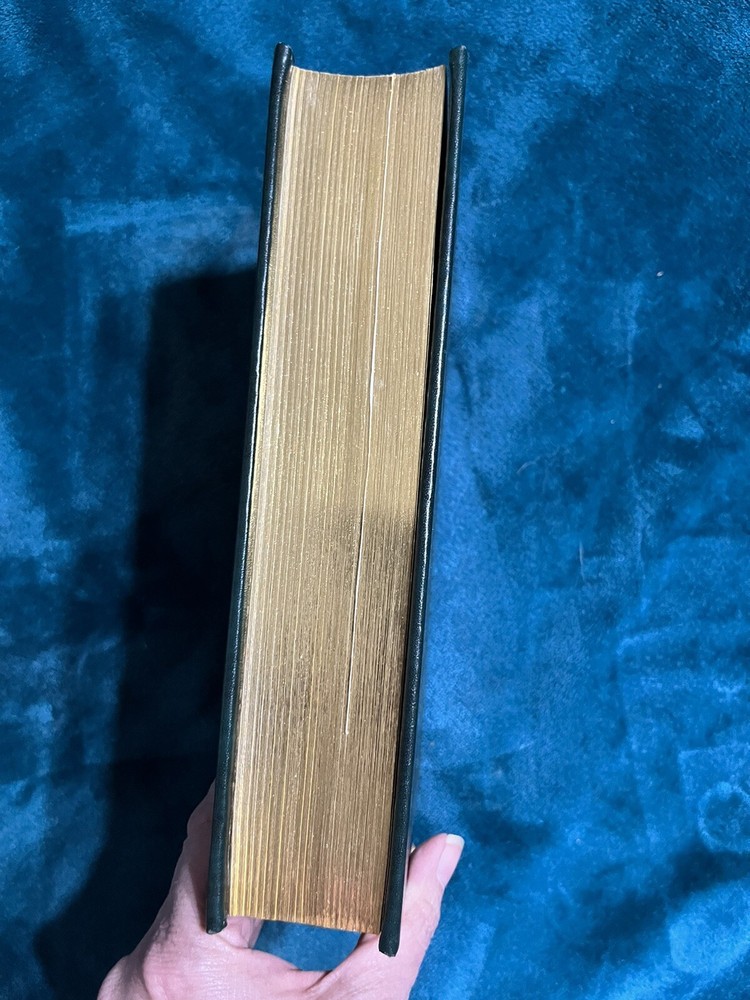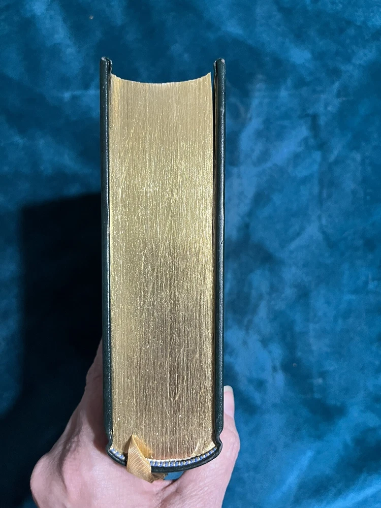 Plastic was removed and sat on shelf. Has not been read. There is a page that did not get cut properly during production and it sticks out just a bit. See photos.