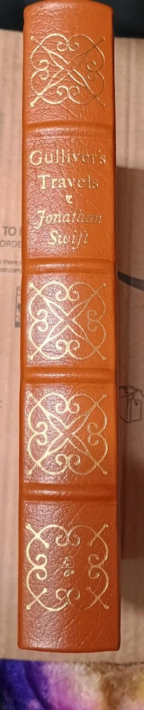 The product is a collector's edition of "Gulliver's Travels" by Jonathan Swift, published by The Easton Press in 1976. This vintage hardcover book features a leather-bound cover, making it a classic addition to any literary collection. Written in English, the novel falls under the genres of satire and science fiction, exploring themes of morality and ethics through the protagonist's fantastical adventures. This edition is not personalized and does not include an ex libris or inscriptions, making it a timeless piece for readers interested in classic literature.