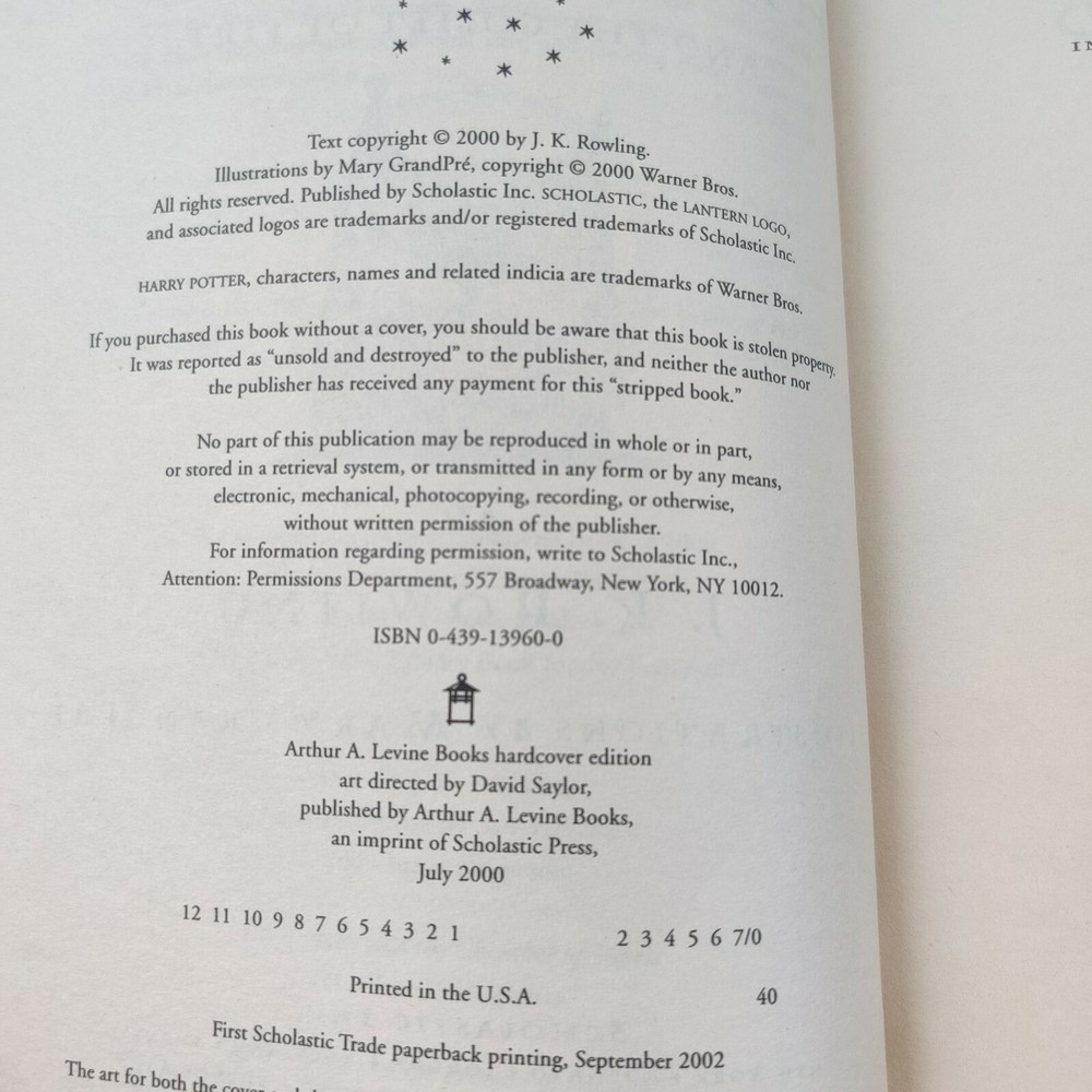 HARRY POTTER and the Goblet of Fire - by J.K. Rowling Paperback Book. Pre-owned condition with some signs of shelf wear and age, no writing inside book Please see pictures for more details on condition All pages are legible
