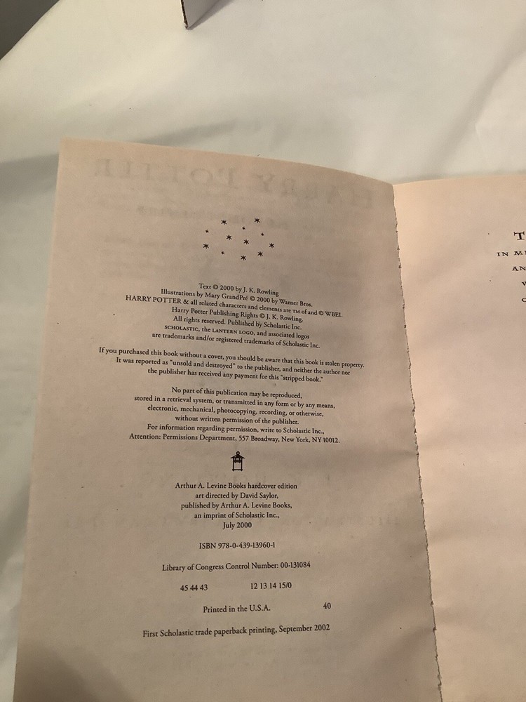 HARRY POTTER and the Goblet of Fire - by J.K. Rowling Paperback Book. Some minor wear and tear on outside. Please see photos. Thank you....
