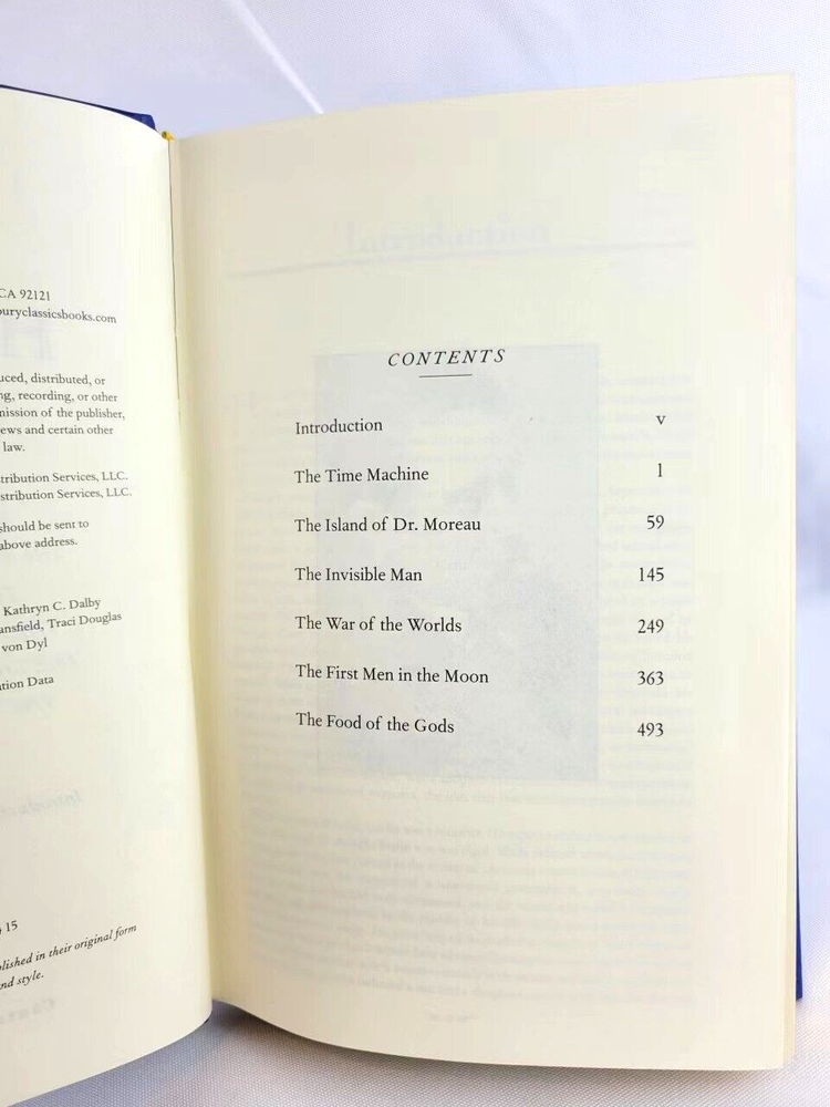Publisher : Canterbury Classics; Lea edition (October 1, 2012) Hardcover : 664 pages Item Weight : 2.14 pounds Dimensions : 6.25 x 1.4 x 9.25 inches No home library is complete without the classics! H. G. Wells is a keepsake collection of the author's greatest work to be read and treasured. He was the first to popularize the concept of time travel. He disturbed--and fascinated--us with a frightening doctor’s island. He wrote of an invisible man, of men on the moon, and of a war of the worlds. He has influenced countless other writers, artists, and even scientists. H. G. Wells is one of the most acclaimed science fiction writers who ever lived, and five of his classic tales are collected in this book for readers to treasure. H. G. Wells includes The Time Machine, The Island of Dr Moreau, The Invisble Man, The War of the Worlds, The First Men in the Moon, and The Food of the Gods. Readers new to this remarkable author will delight in these amazing stories, while fans of Wells will enjoy the insightful introduction by an expert on the author’s life and work. All will appreciate the leather cover, gilded edges, printed endpapers, ribbon bookmark, and other features on this unique gift book.