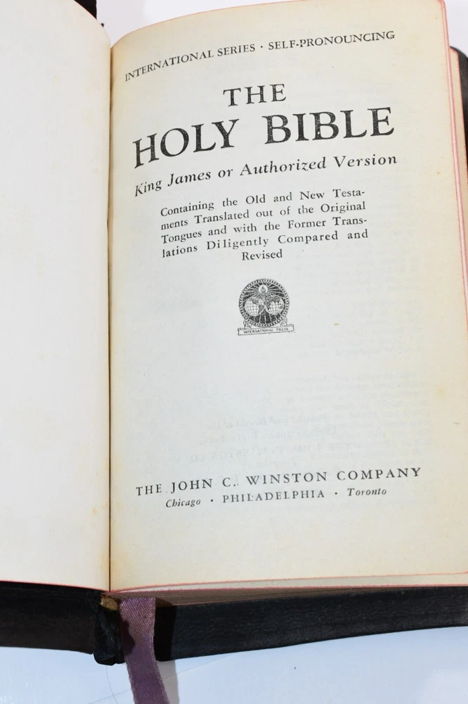 TITLE: Holy Bible ITEM DETAILS: Spine: Good light wear - Pages: Very Good. No missing pages - Family Register/ Proclamation pages are not written on List note 3-12-23 Book shelf A-2 .